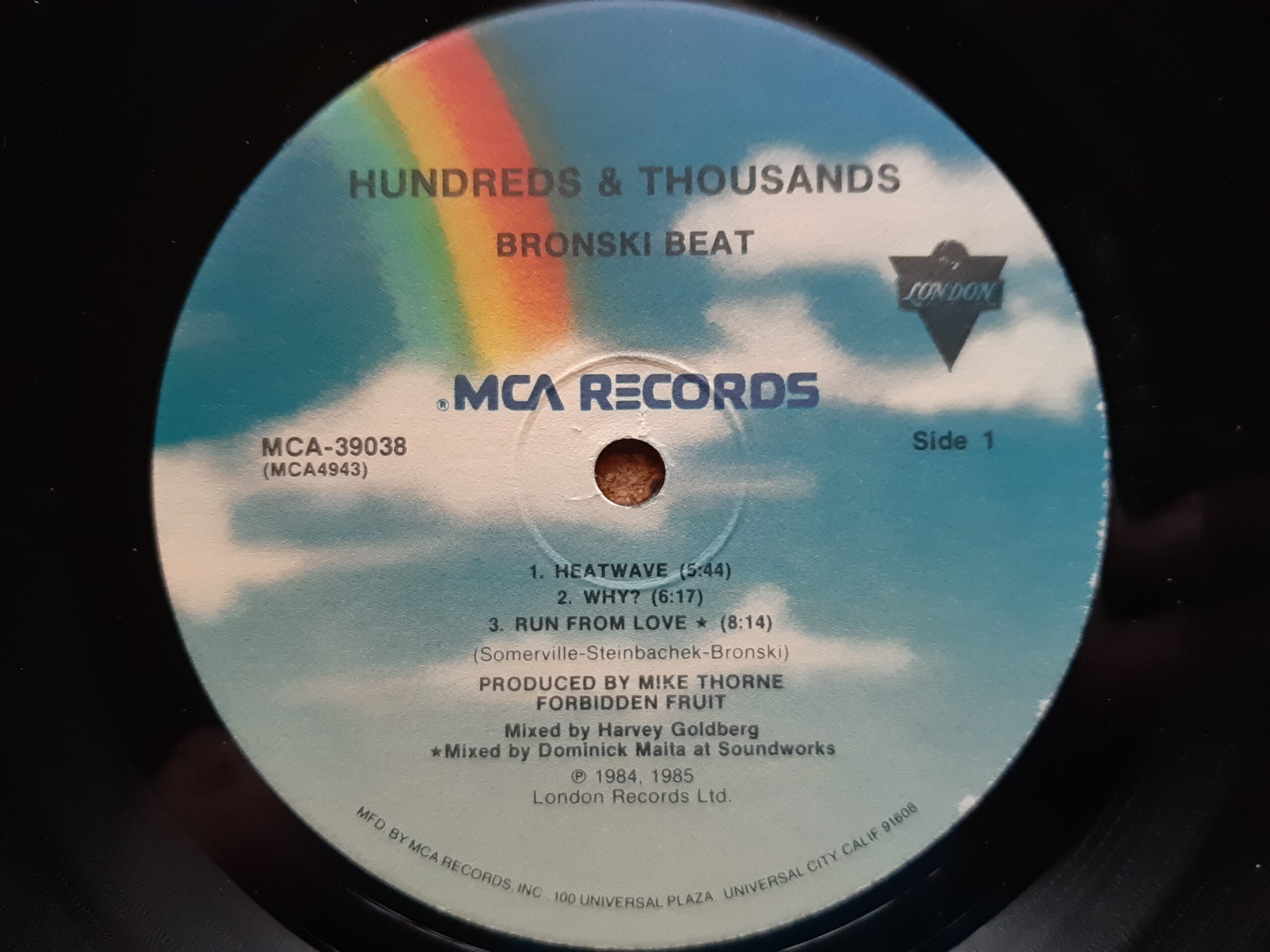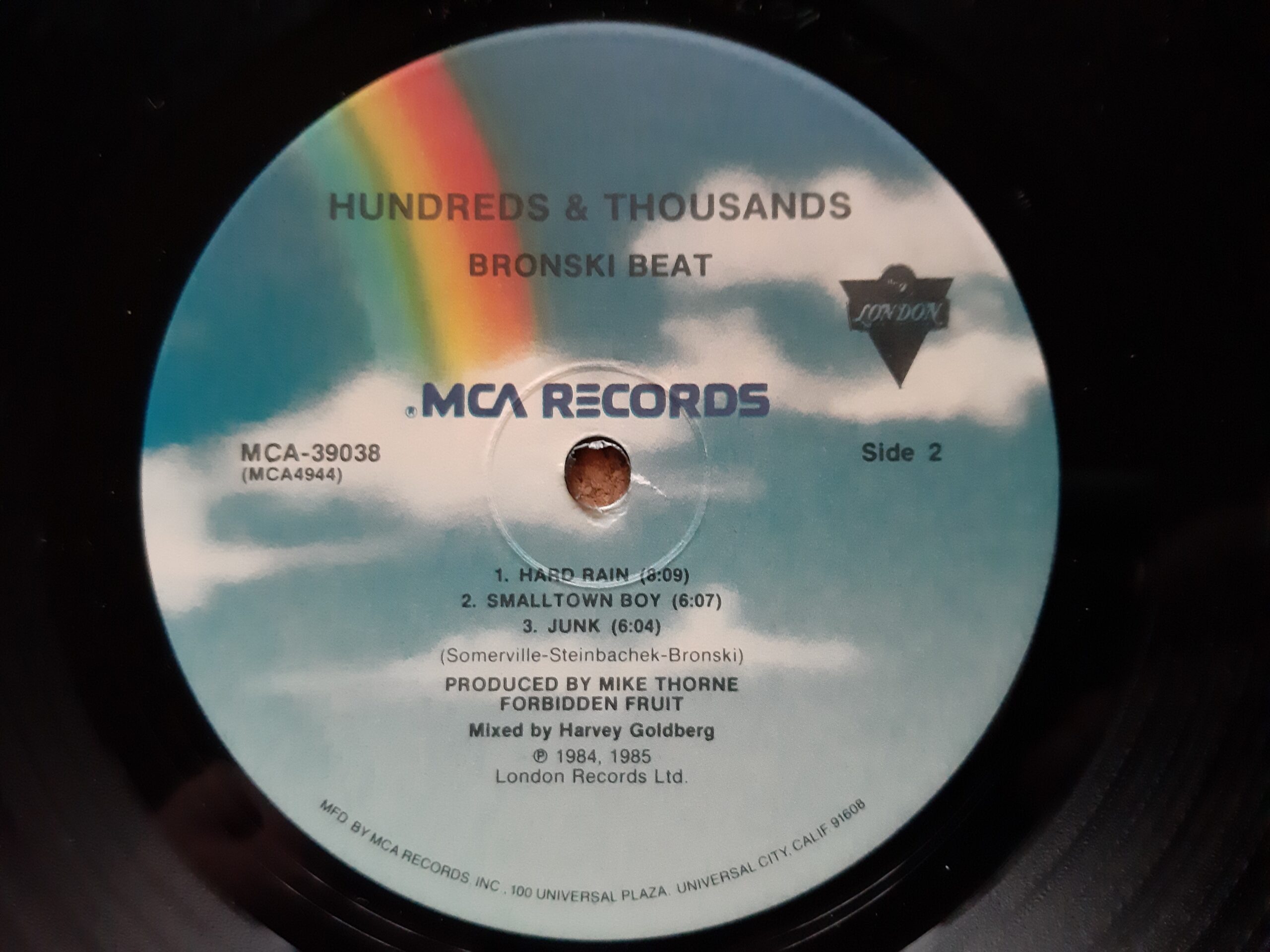 Bronski Beat – Hundreds & Thousands (The Remix Plus) (1985) MCA Records – MCA-39038 (US) Trackliste Seite 1 1 Heat Wave 5:44 2 Why 6:17 3 Run From Love 8:14 Seite 2 1 Hard Rain 8:09 2 Smalltown Boy 6:07 3 Junk 6:04