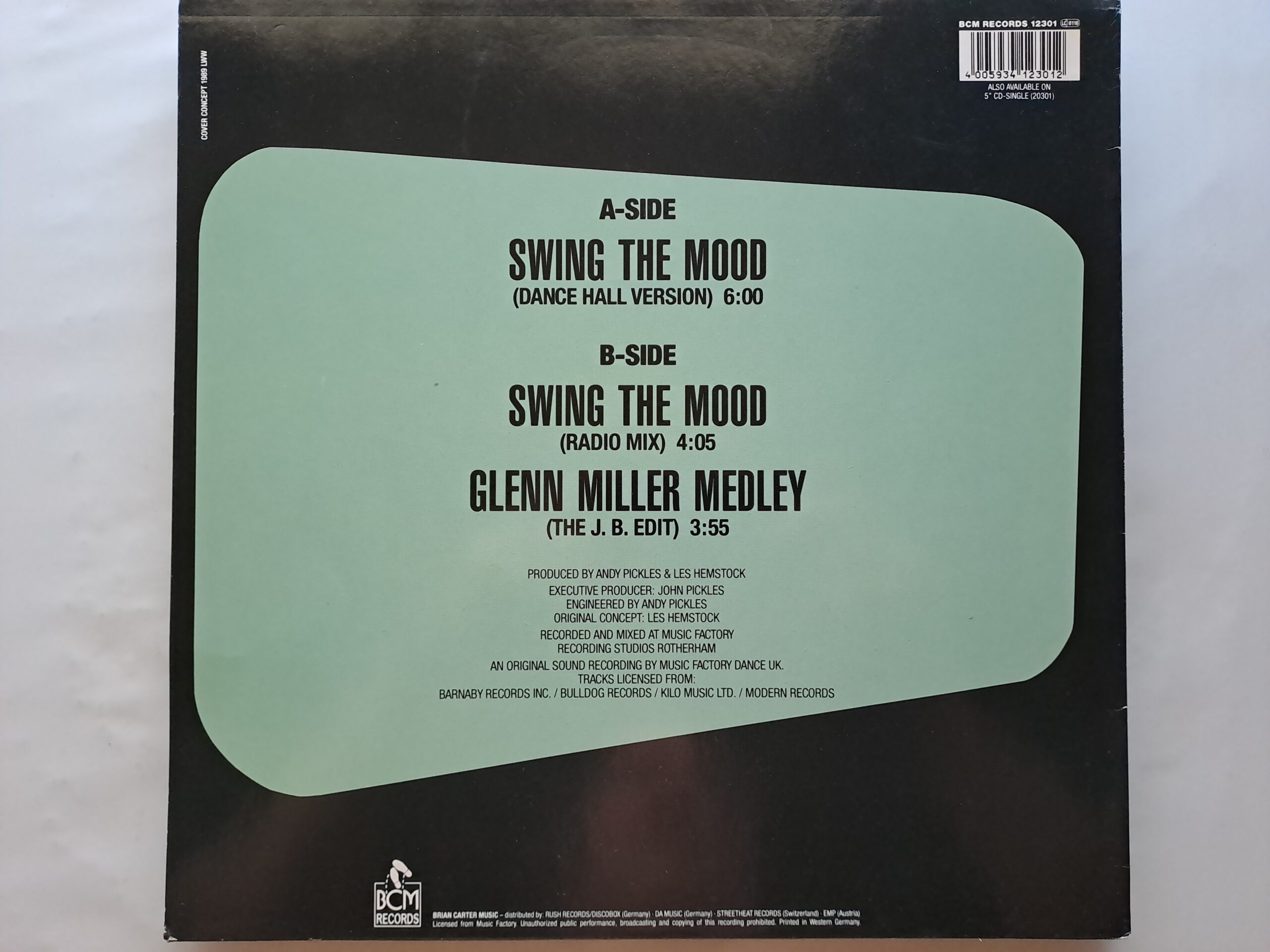 Jive Bunny And The Mastermixers – Swing The Mood (1989) BCM Records – 12301 (Maxi) Trackliste Seite 1 1 Swing The Mood (Dance Hall Version) 6:00 Seite 2 1 Swing The Mood (Radio Mix) 4:05 2 Glenn Miller Medley (The J.B. Edit) 3:55