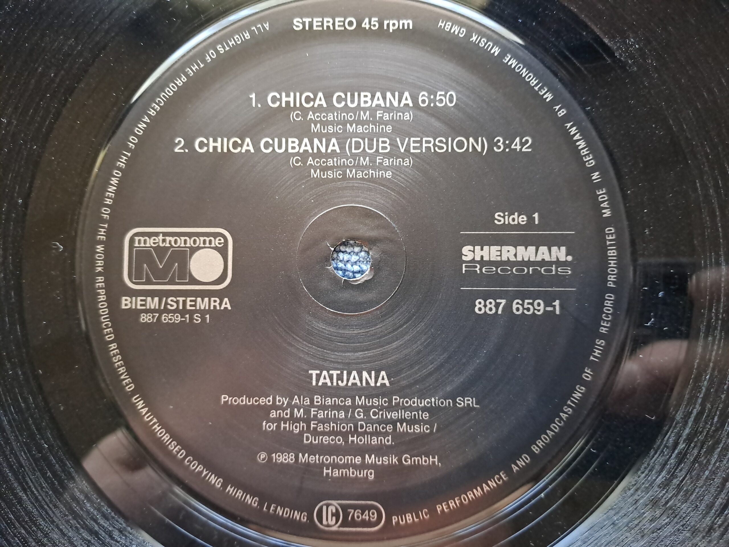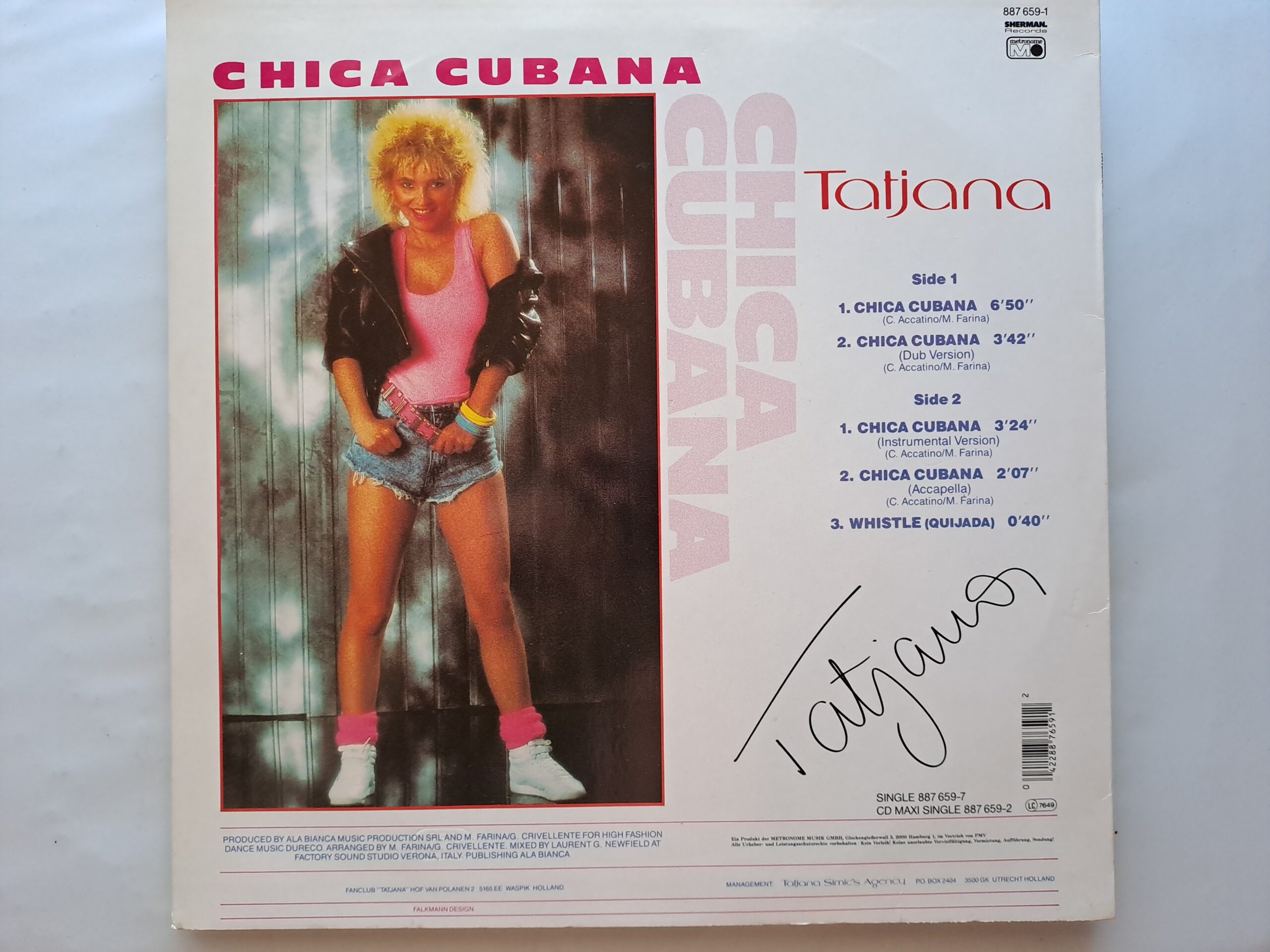 Tatjana – Chica Cubana (1988) Sherman. Records – 887 659-1 (Maxi) Trackliste Seite 1 1 Chica Cubana 6:50 2 Chica Cubana (Dub Version) 3:42 Seite 2 1 Chica Cubana (Instrumental Version) 3:24 2 Chica Cubana (A Cappella) 2:07 3 Whistle (Quijada) 0:40