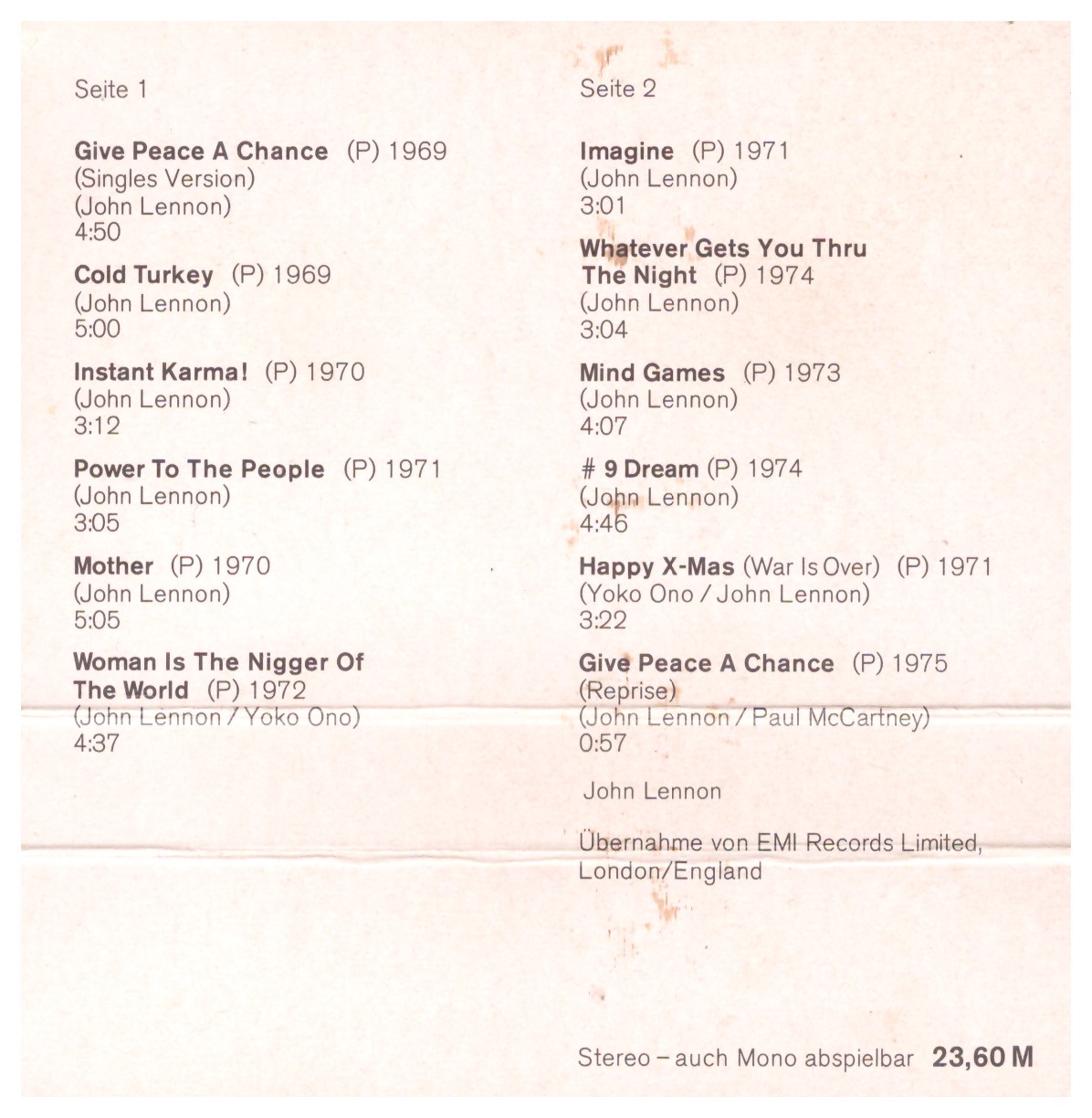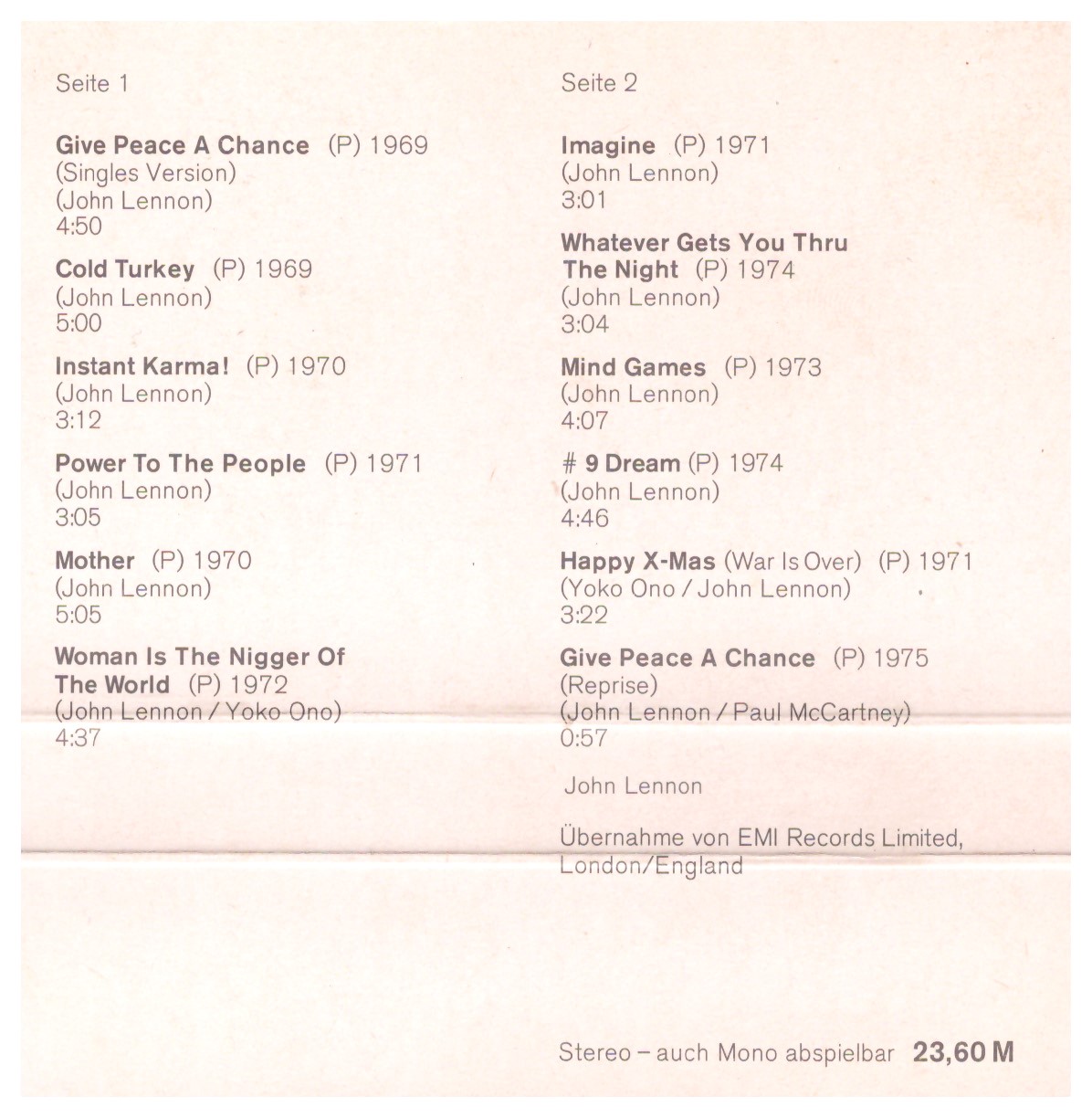 1 | Give Peace A Chance (Singles Version) | 4:50 | |