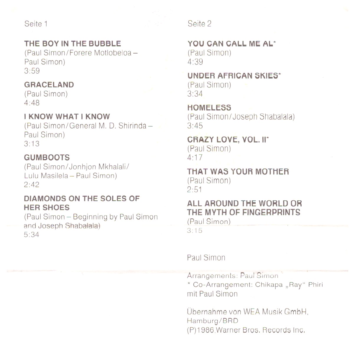 1 You Can Call Me Al 4:39