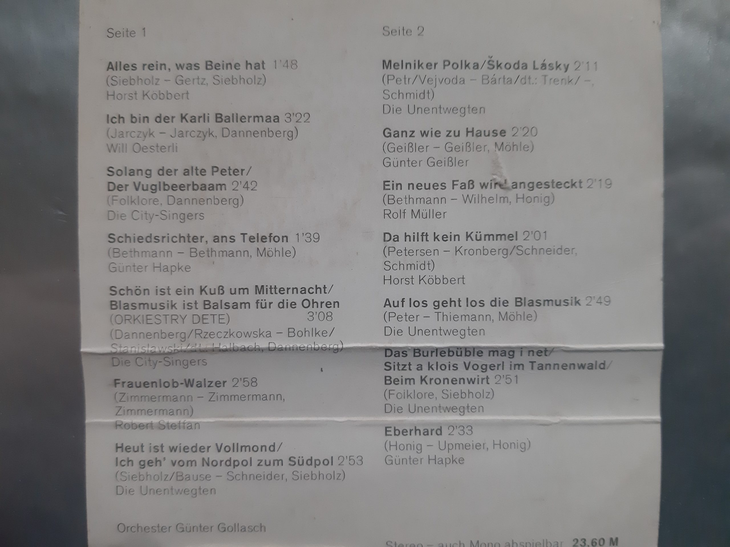 | 3 | Die City-Singers | Solang Der Alte Peter / Der Vuglbeerbaam | 2:42 |