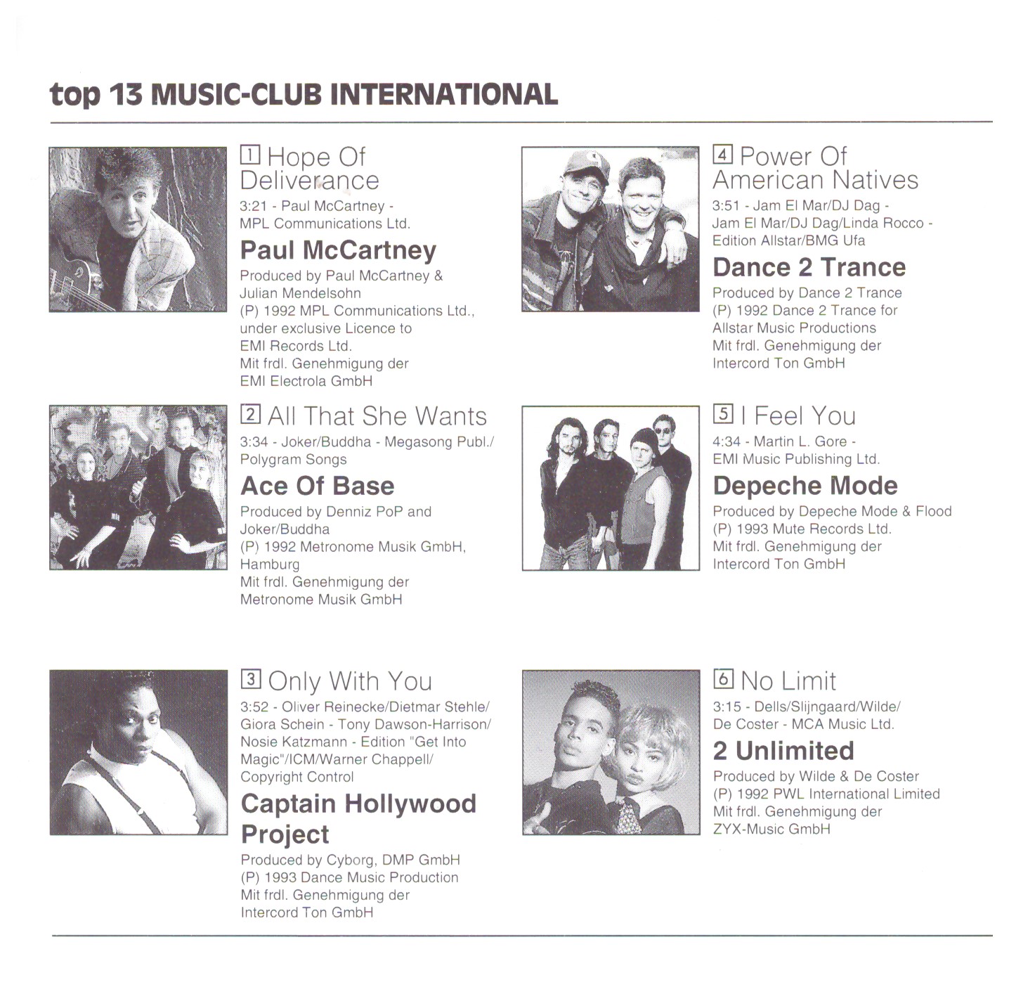 | 6 | 2 Unlimited | No Limit | 3:15 |