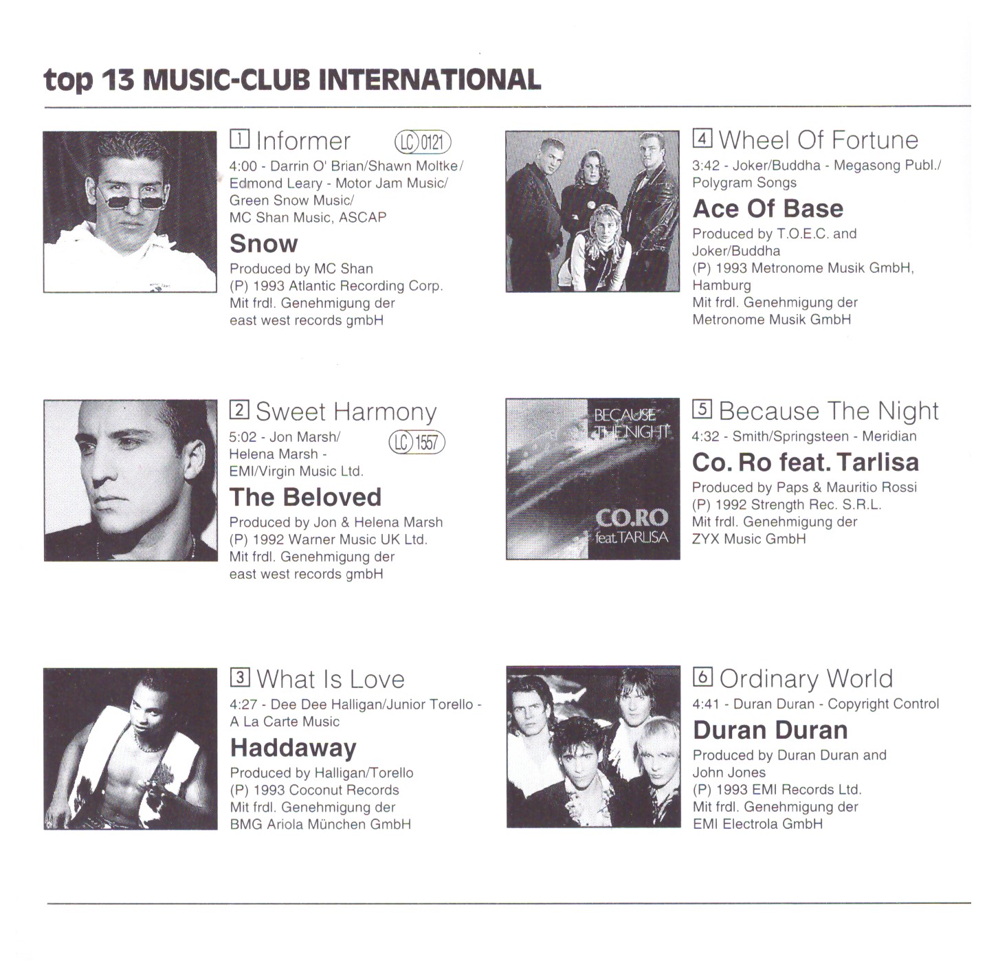 | 3 | Haddaway | What Is Love | 4:27 |