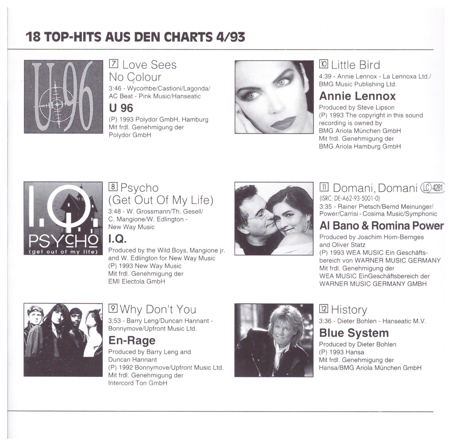 | 7 | U 96 | Love Sees No Colour | 3:46 |