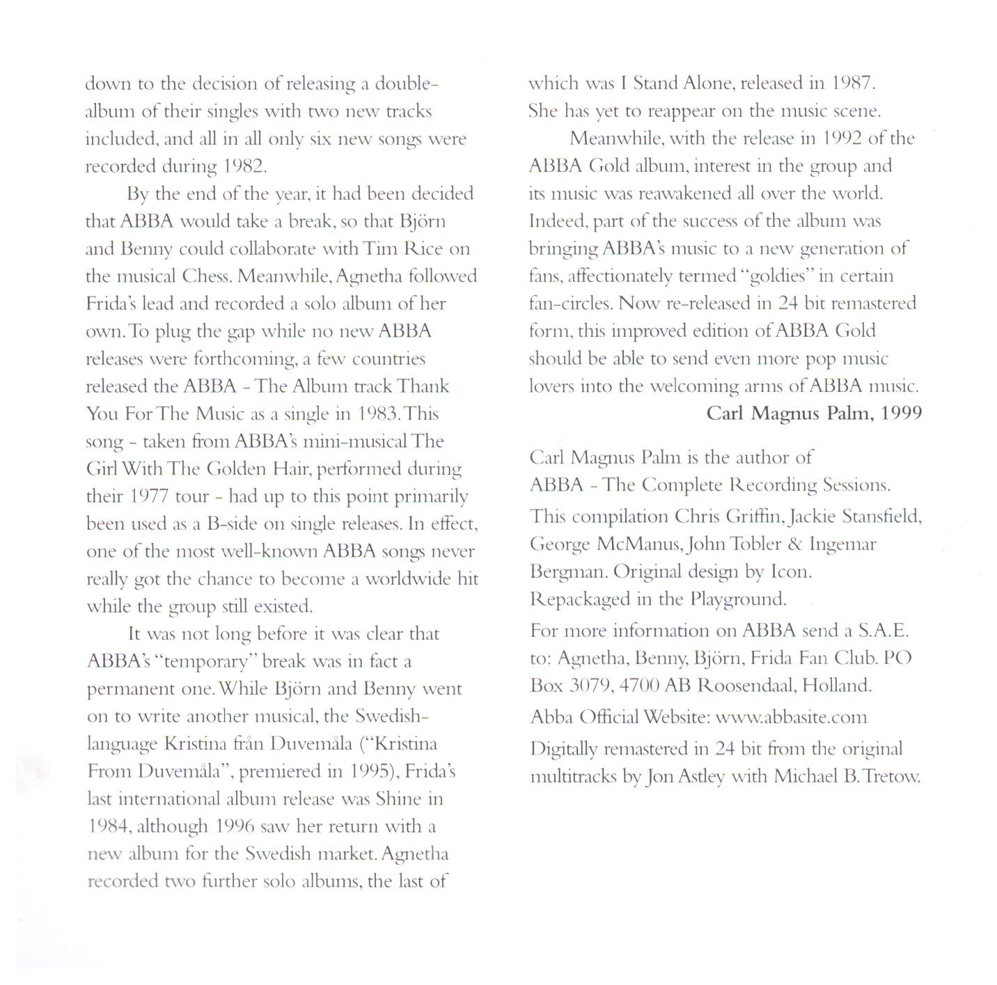 | 18 | Thank You For The Music | 3:51 | |