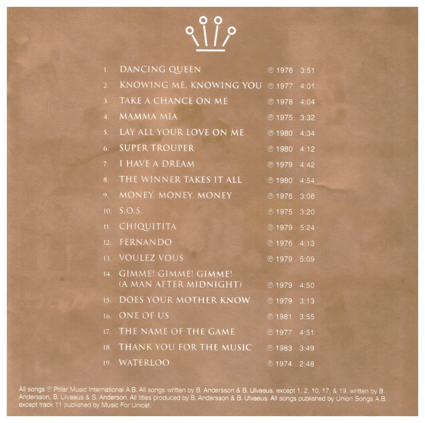 | 1 | Dancing Queen | 3:49 | |