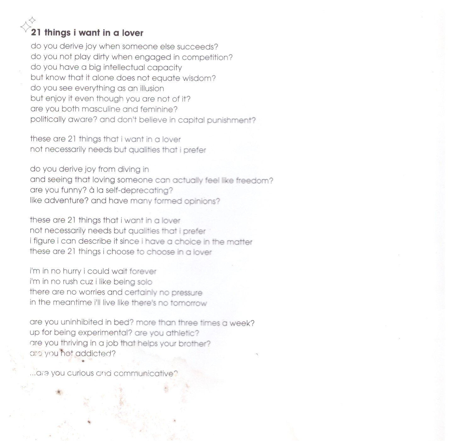 | 1 | 21 Things I Want In A Lover | 3:28 | |