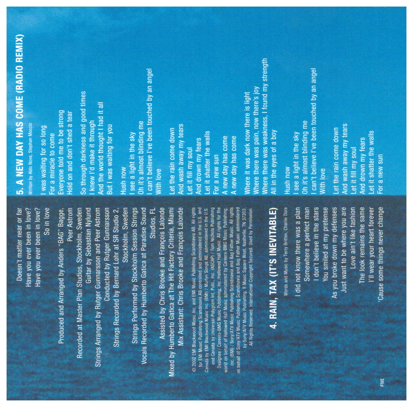 | 5 | A New Day Has Come (Radio Remix) | 4:23 | |