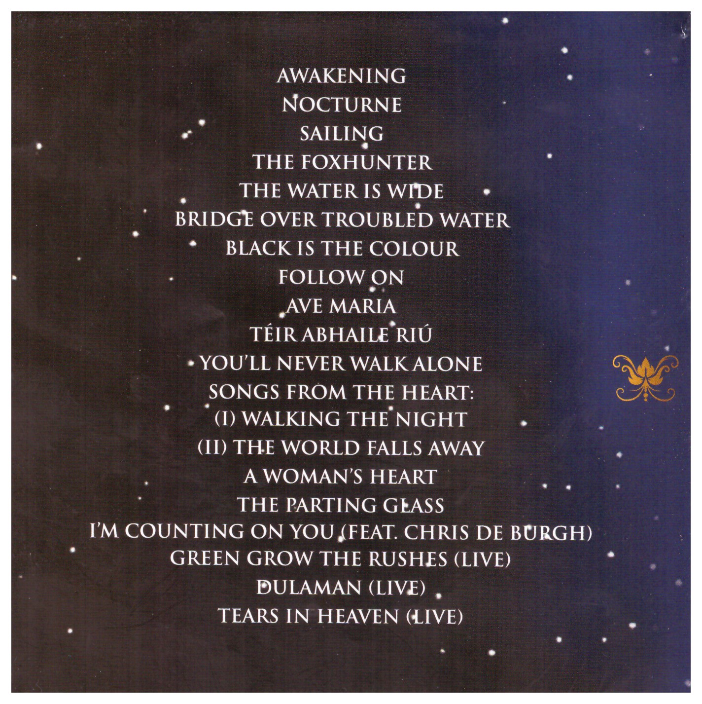 | 18 | Celtic Woman | Tears In Heaven | 4:17 |