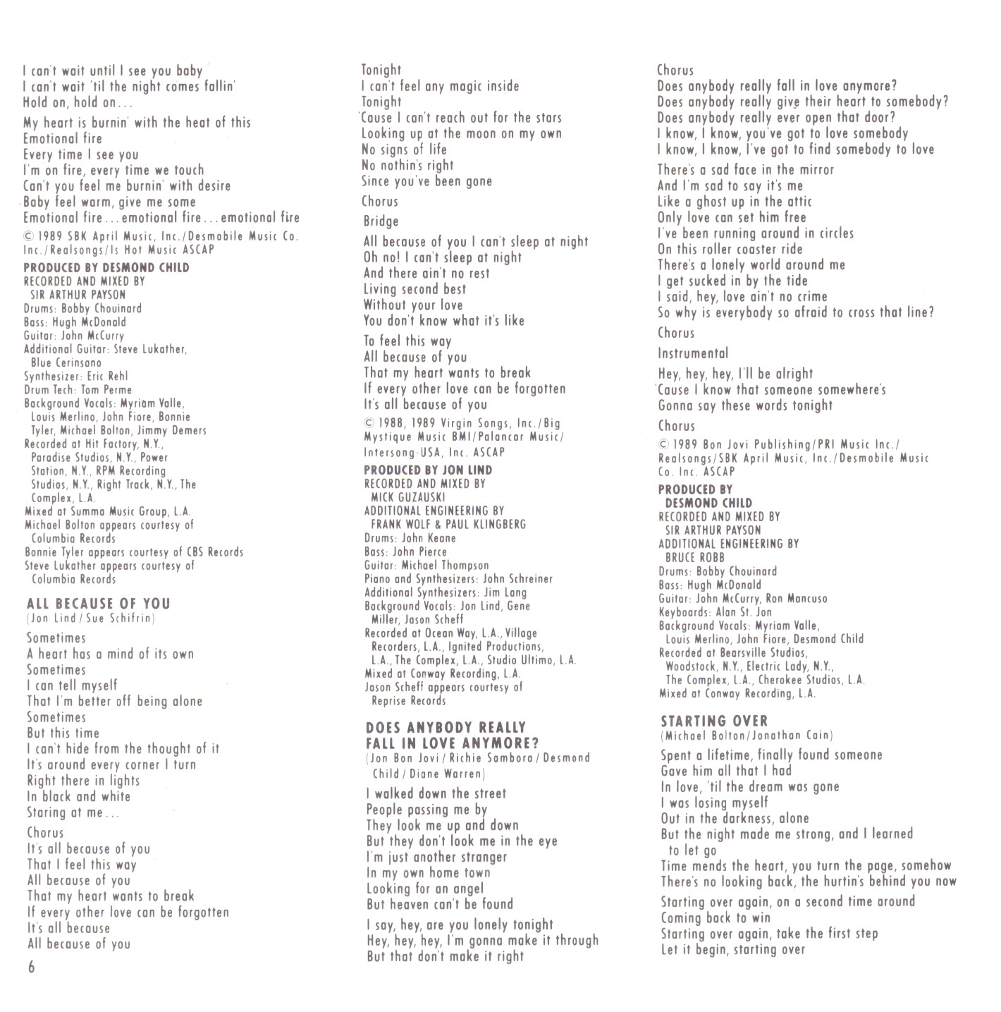 | 9 | Does Anybody Really Fall In Love Anymore? | 4:17 | |