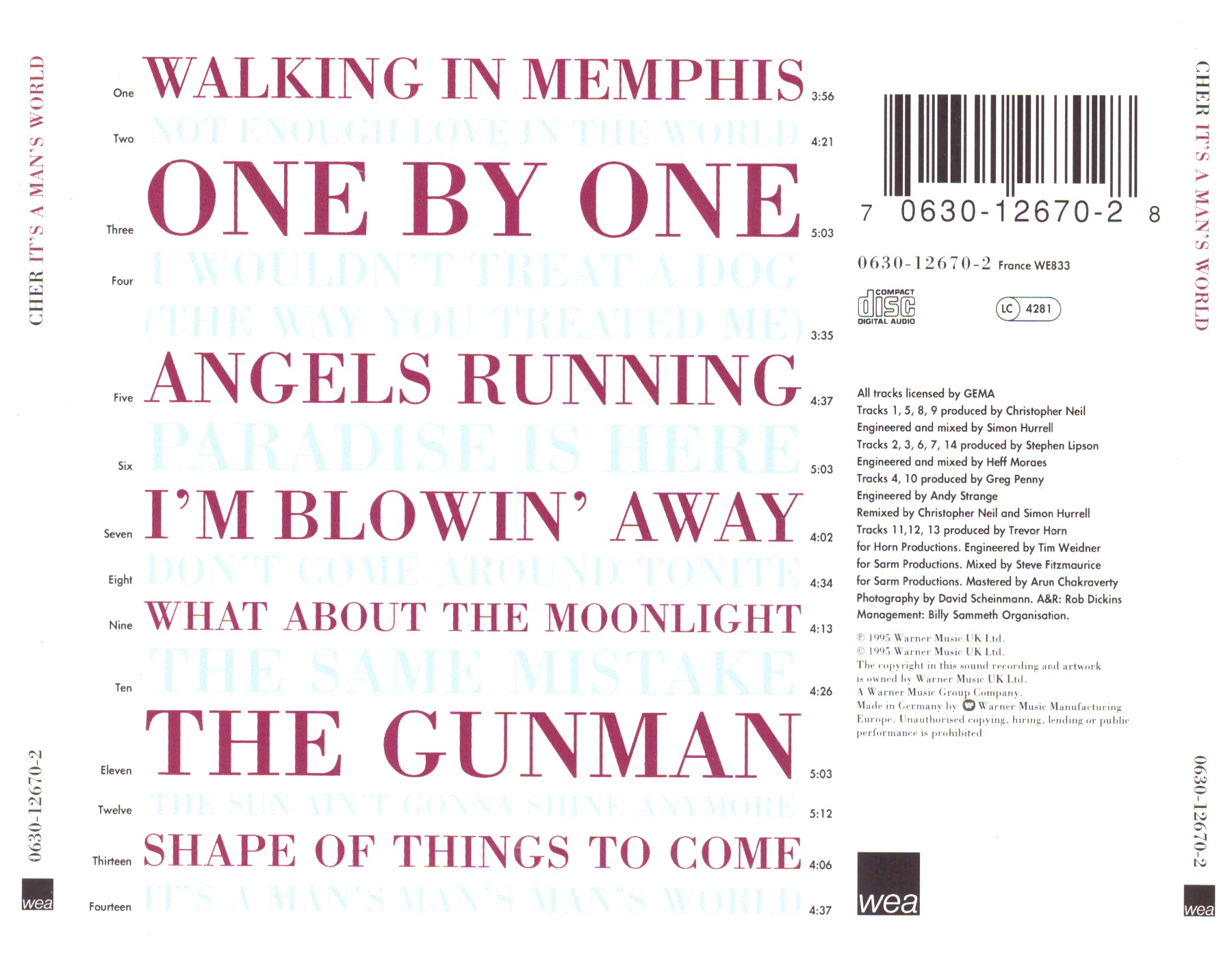 | 14 | It’s A Man’s Man’s Man’s World | 4:37 |