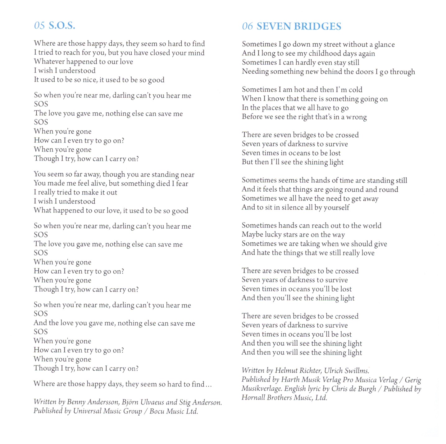 | 5 | S.O.S. | 3:22 | |