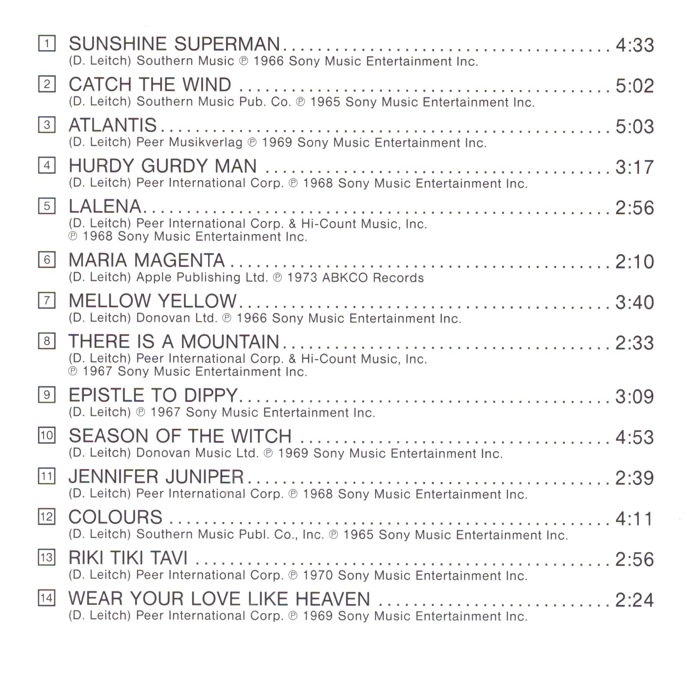 | 2 | Catch The Wind | 5:02 | |