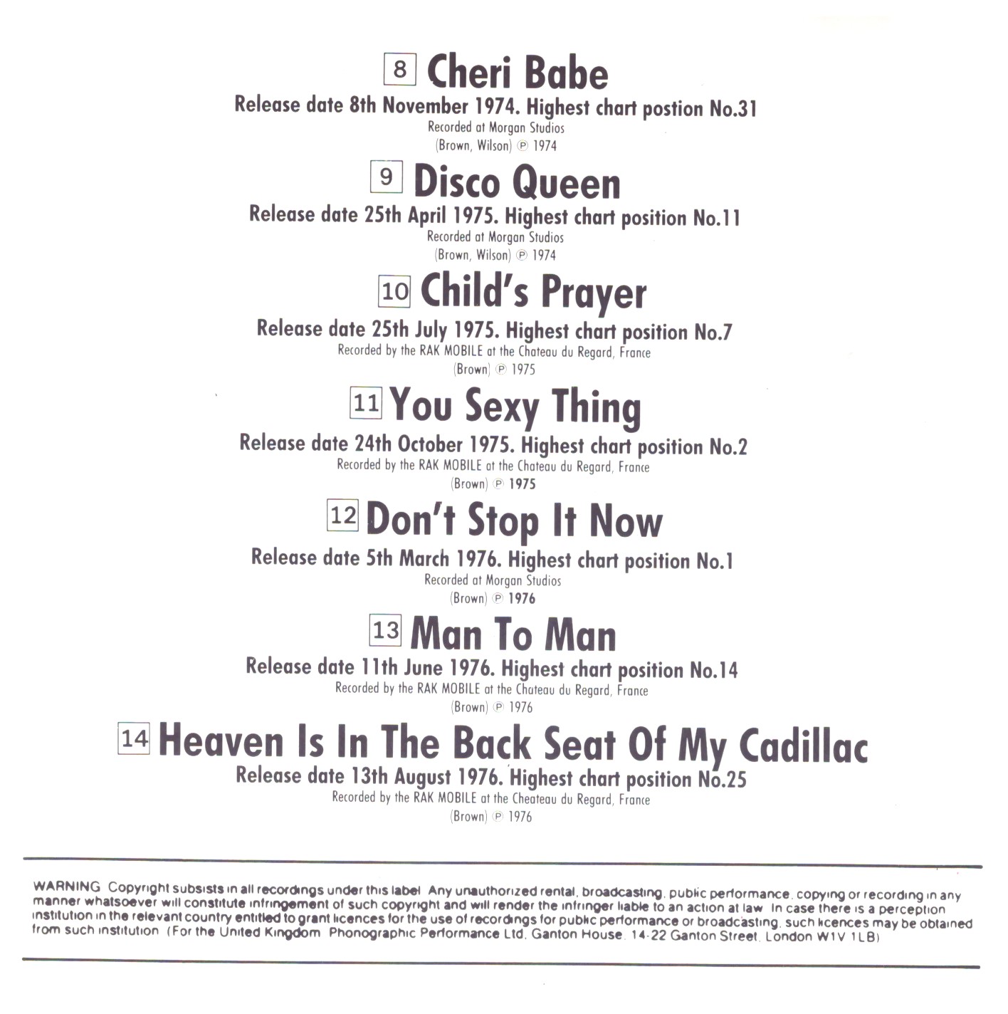 | 14 | Heaven Is In The Back Seat Of My Cadillac | 4:02 |