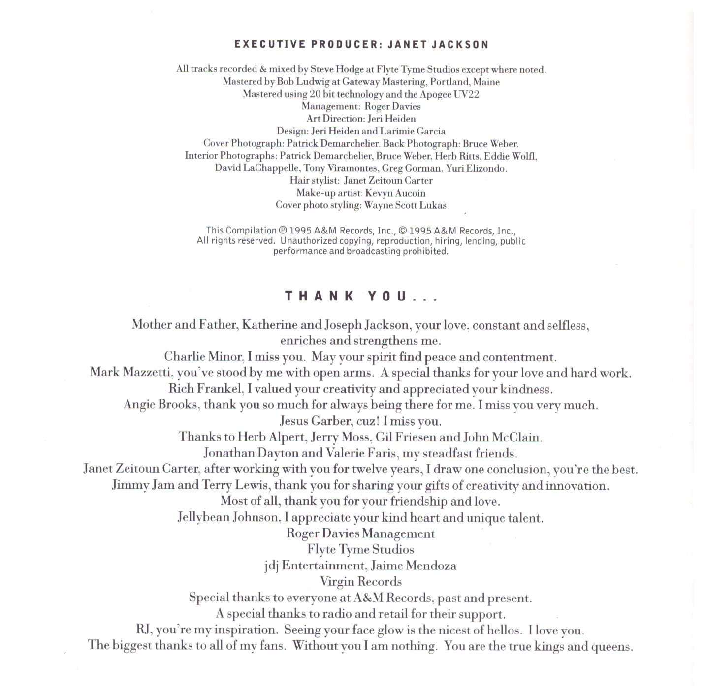 | 16 | Janet Jackson | Come Back To Me | 5:36 |