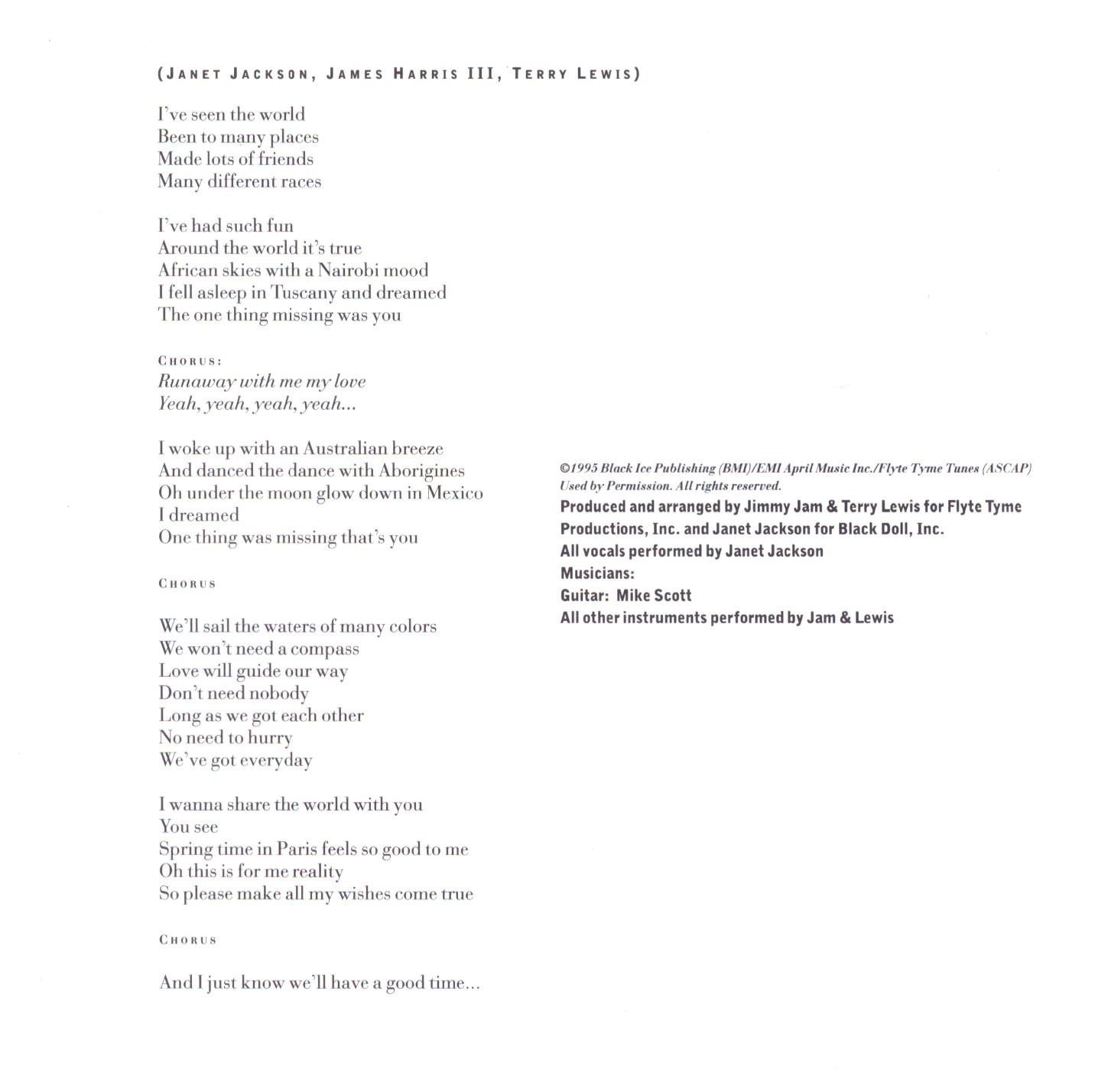 | 1 | Janet Jackson | Runaway | 3:34 |