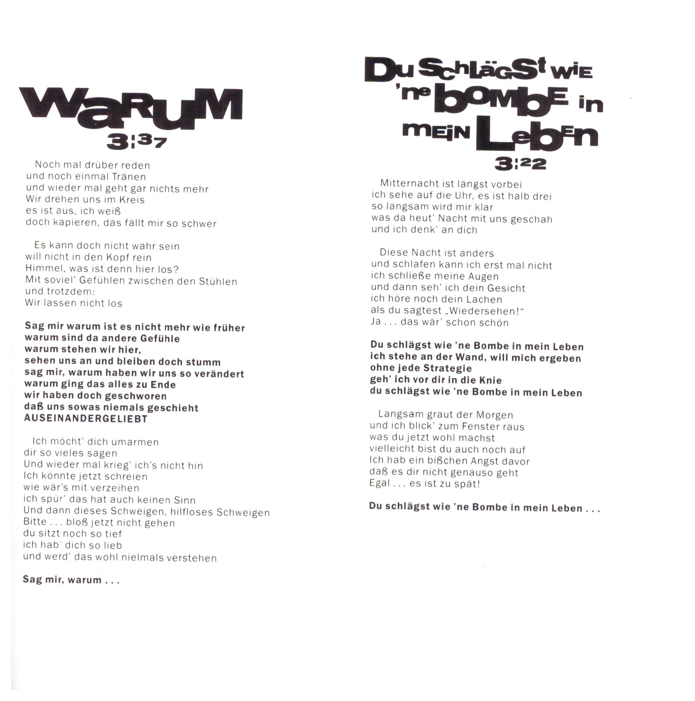 | 4 | Du Schlägst Wie ‚Ne Bombe In Mein Leben | 3:22 | |