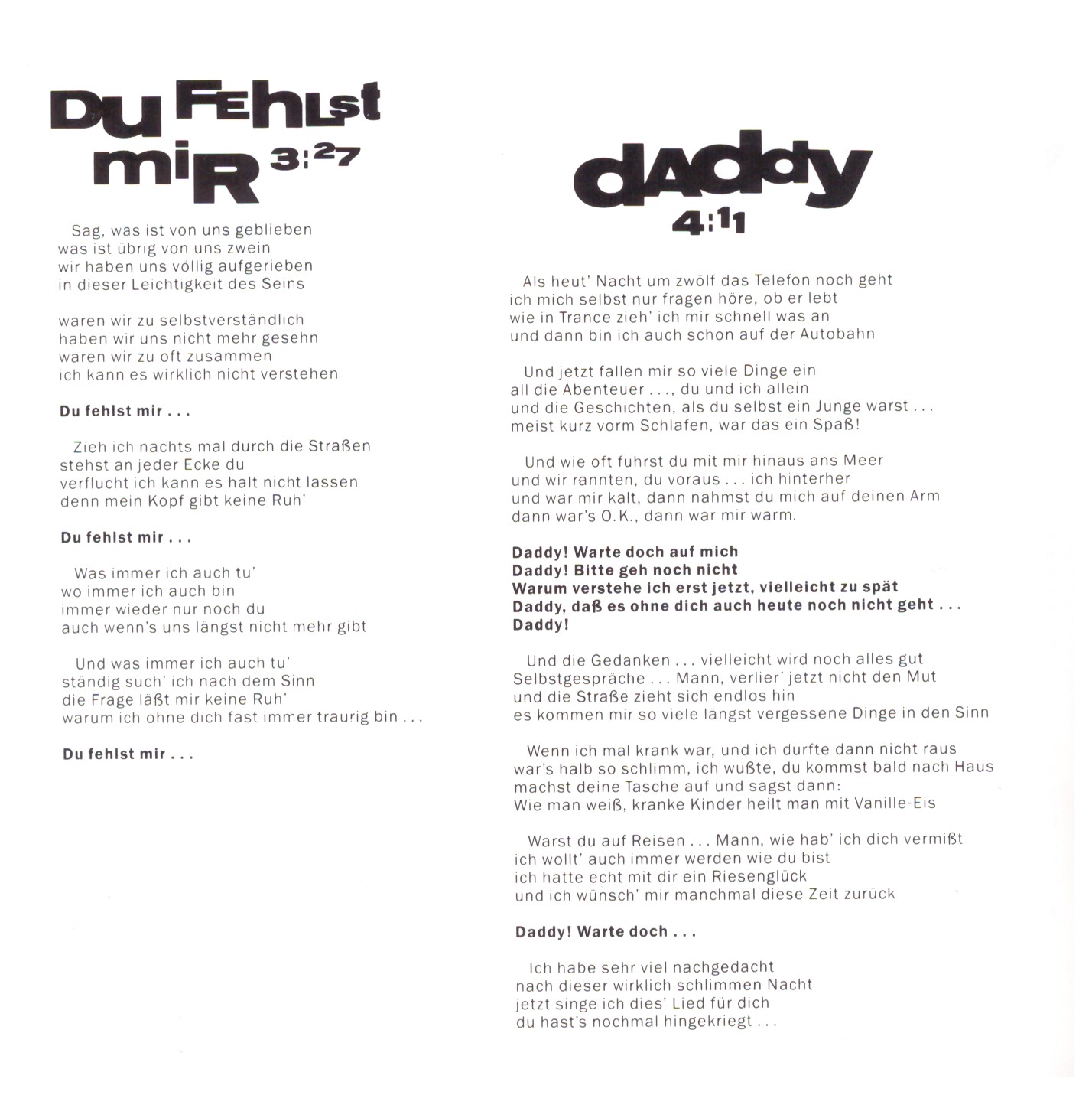 | 5 | Du Fehlst Mir | 3:27 | |