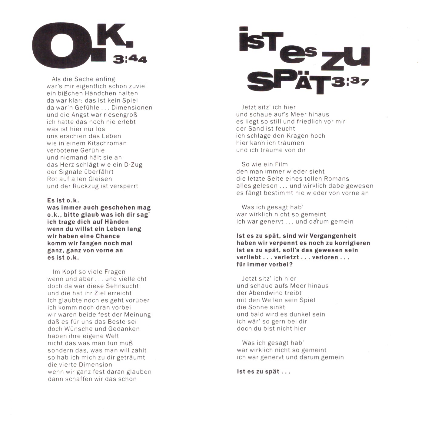 | 8 | Ist Es Zu Spät | 3:37 | |