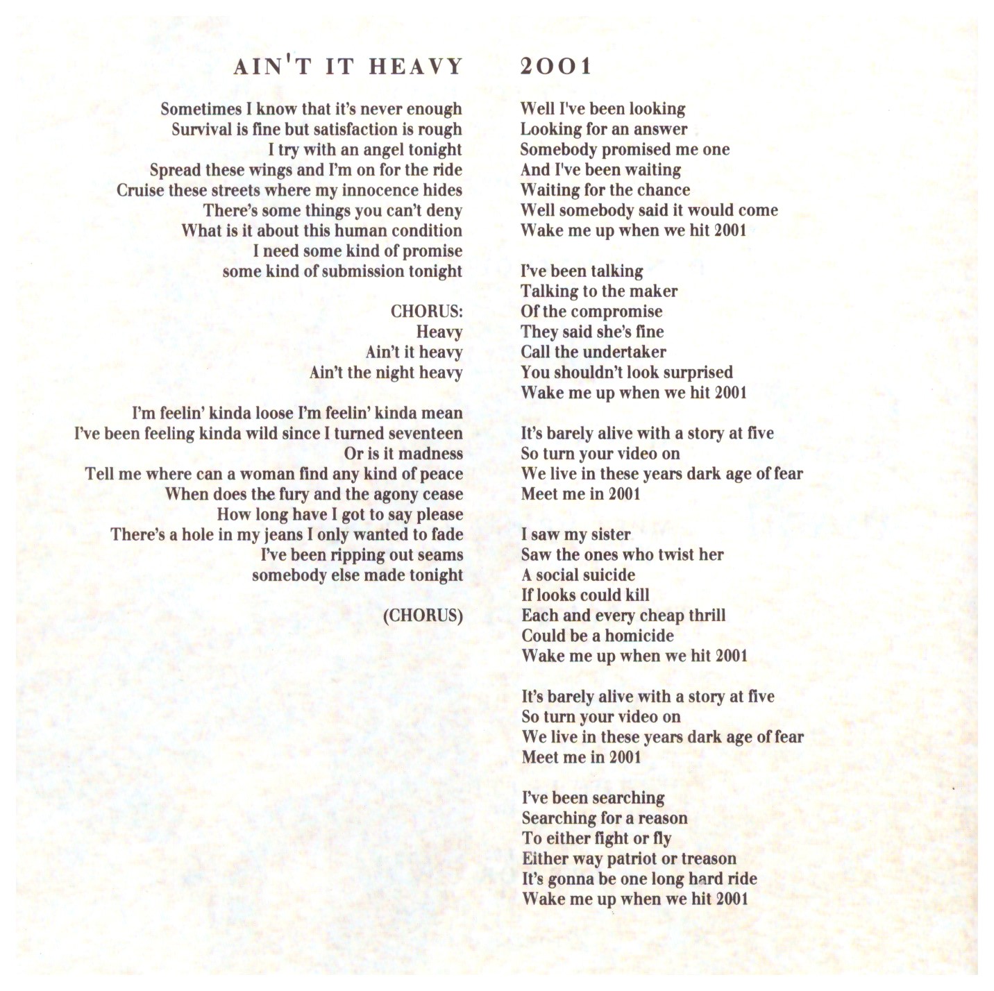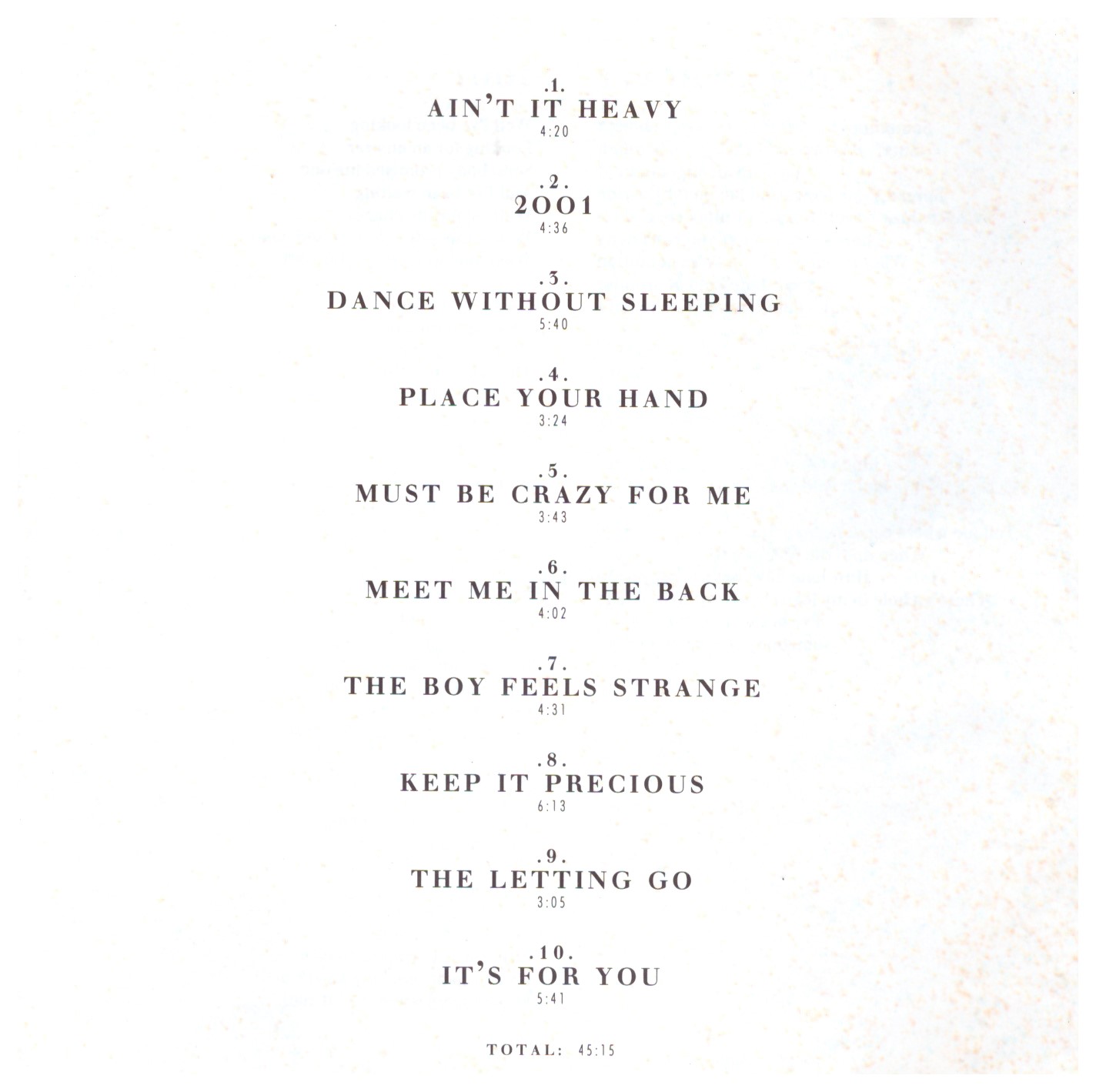 | 1 | Ain’t It Heavy | 4:20 | |