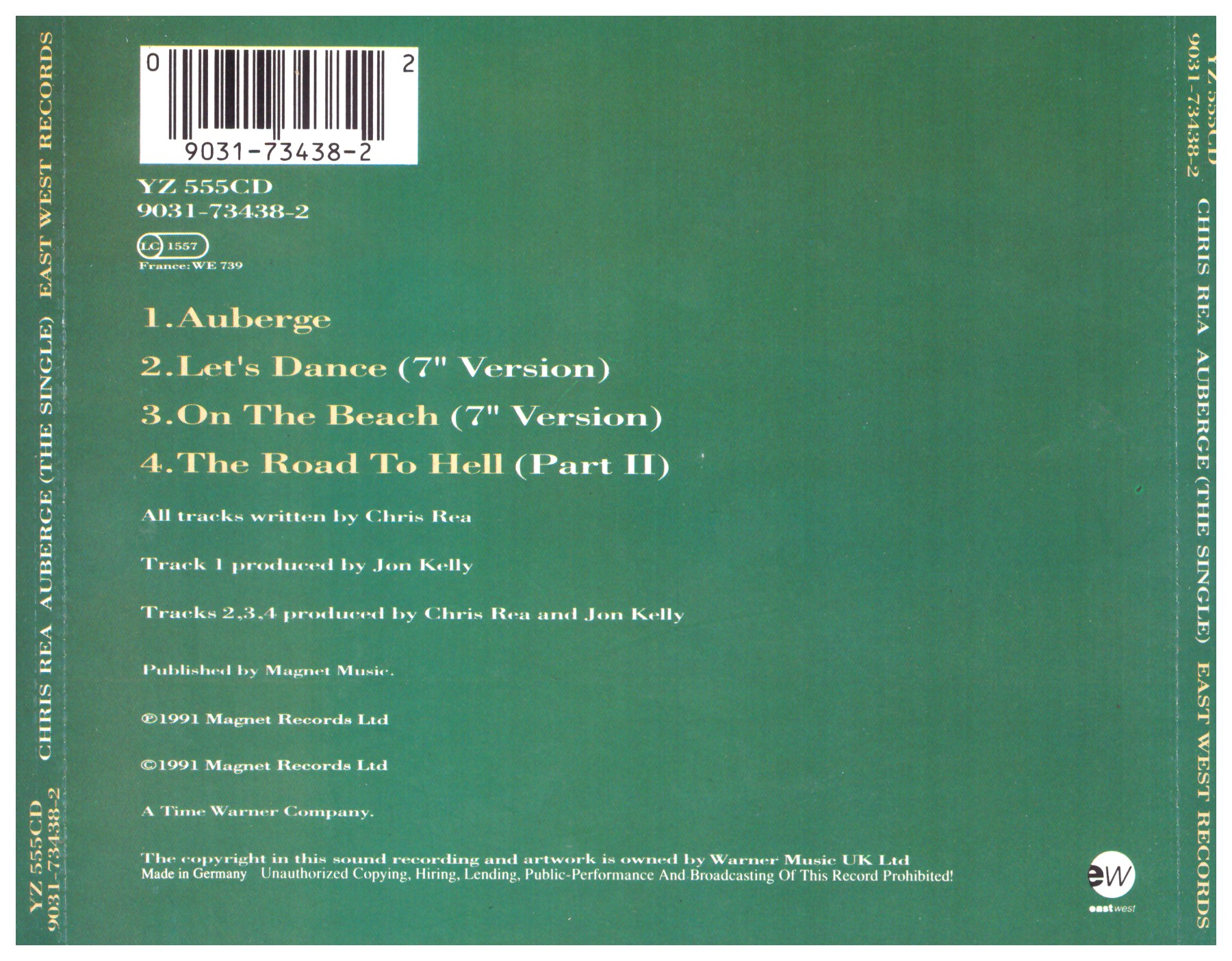 Chris Rea – Auberge (1991) EastWest – 9031-73438-2 Trackliste 1 Auberge 4:44 2 Let’s Dance 4:16 3 On The Beach (Summer ’88) 6:50 4 The Road To Hell (Part II) 3:58