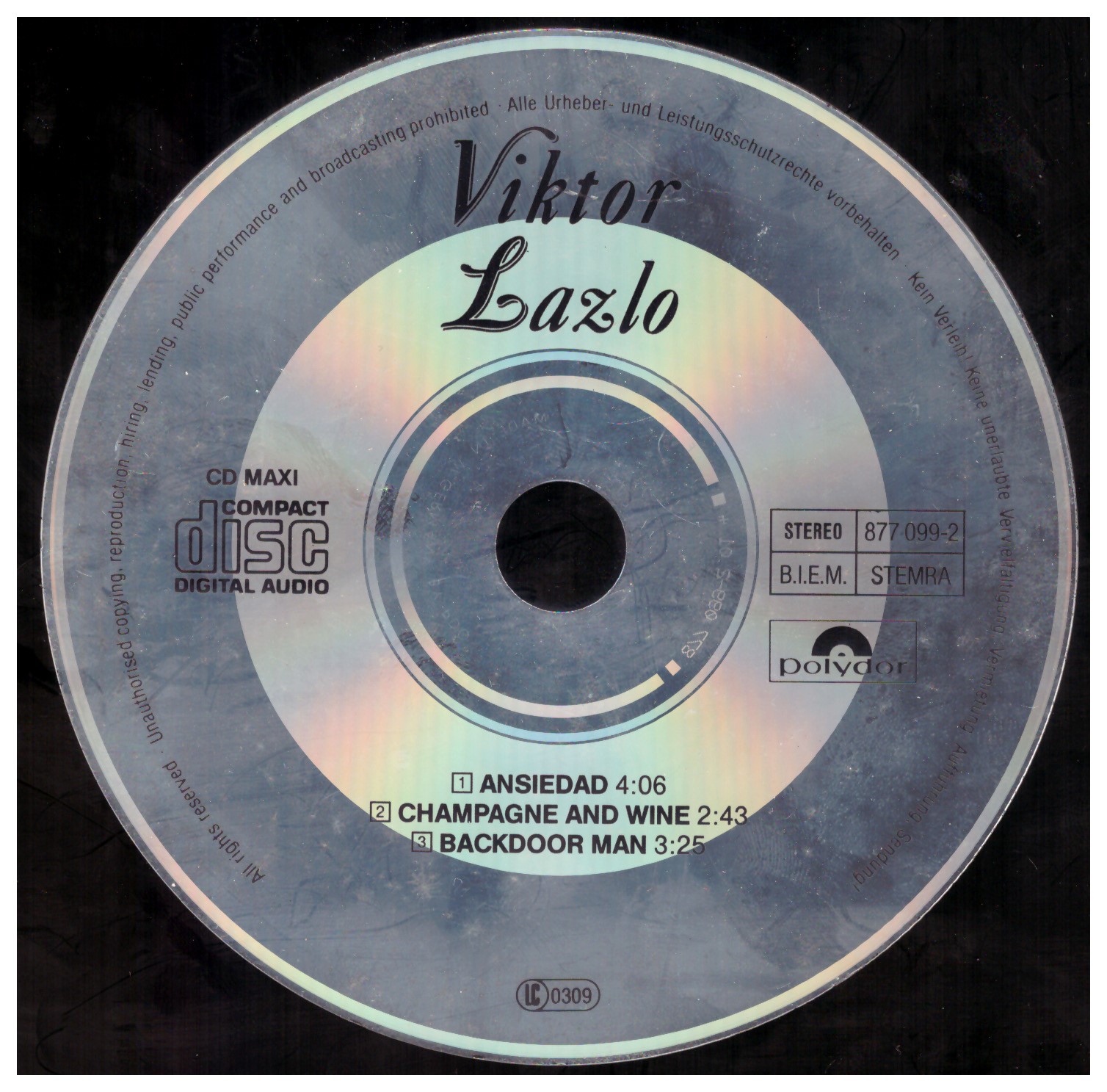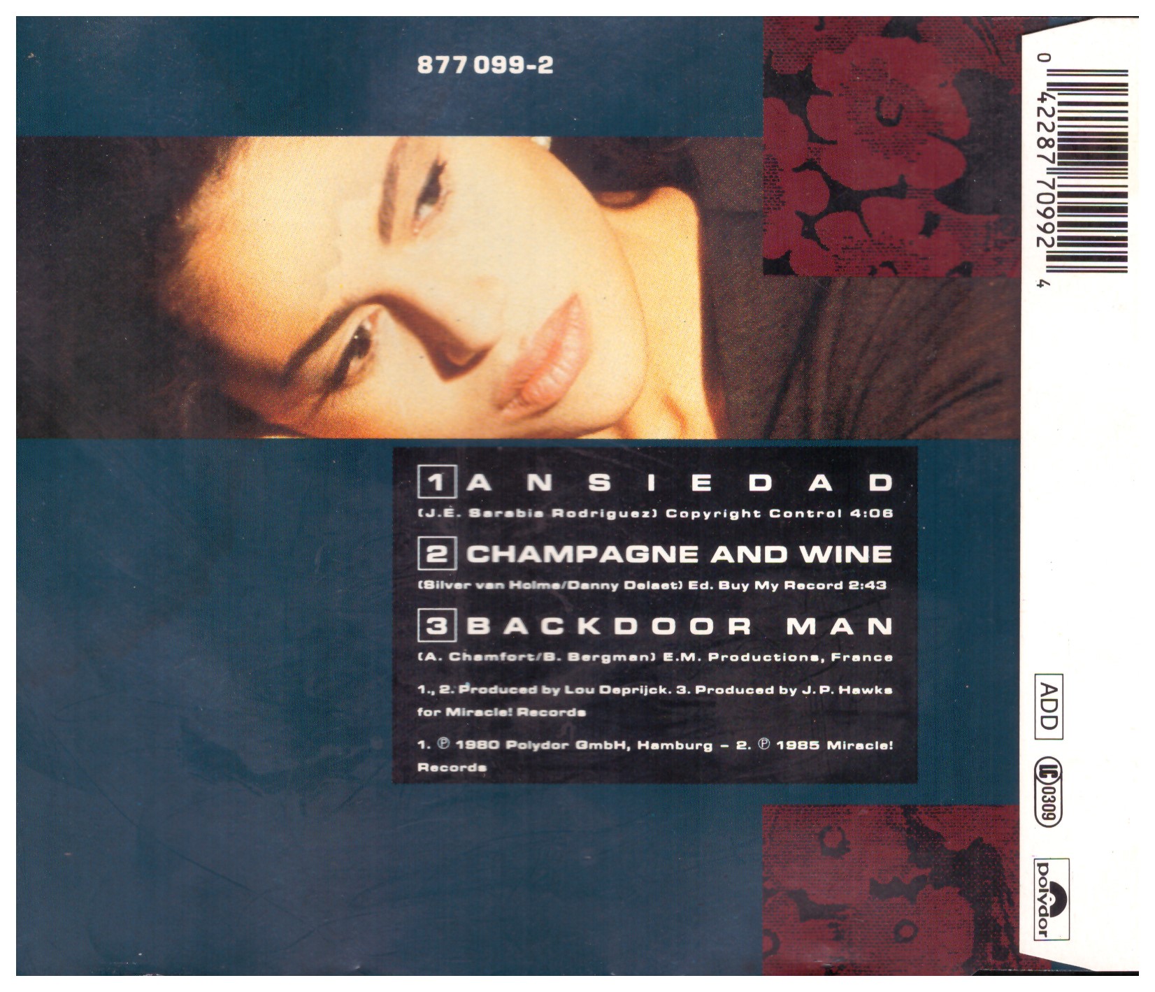 Viktor Lazlo – Ansiedad (1990) Polydor – 877 099-2 Trackliste 1 Ansiedad 3:57 2 Champagne And Wine 2:43 3 Backdoor Man 3:26