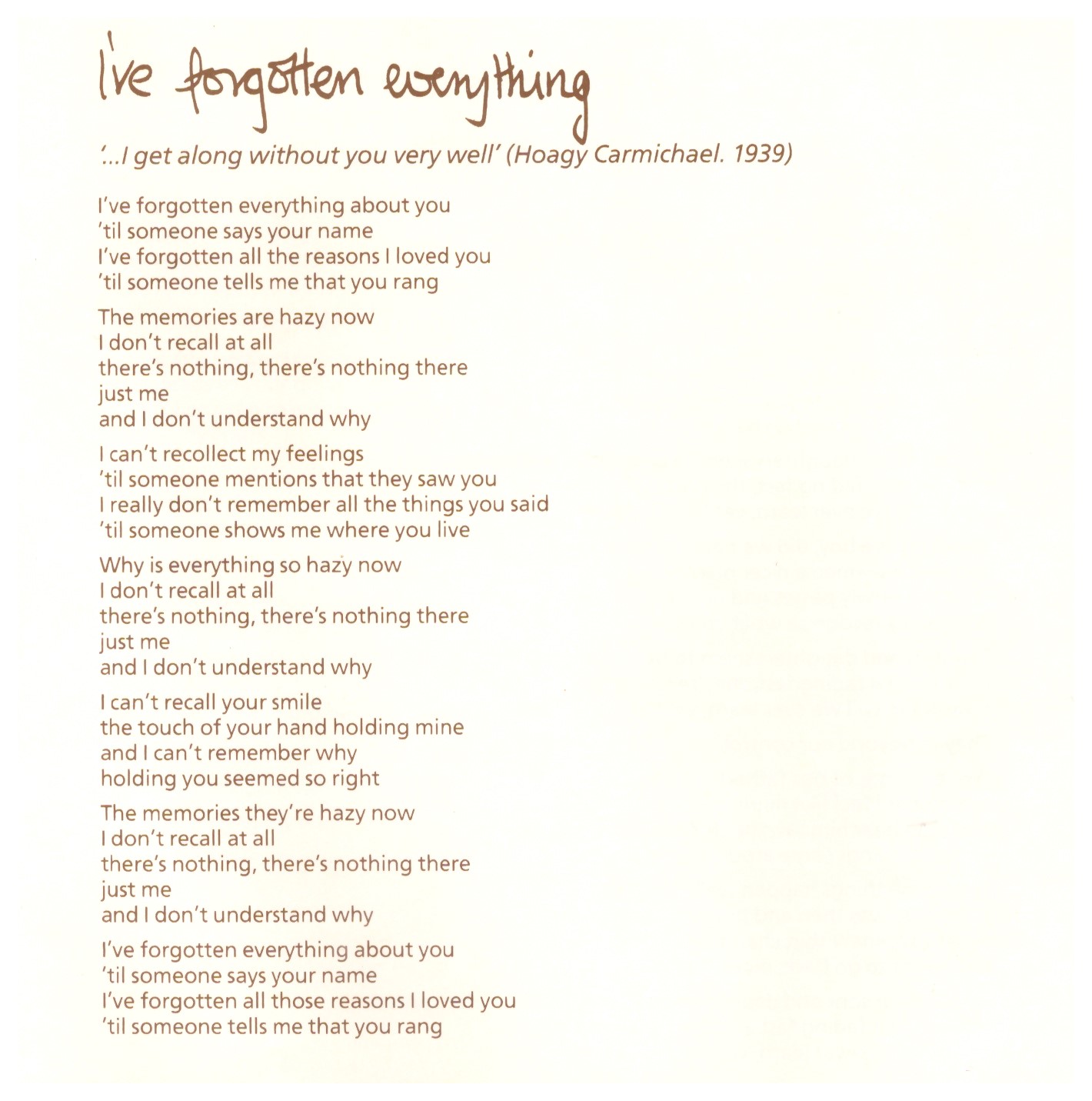 | 4 | I’ve Forgotten Everything | 5:15 | |