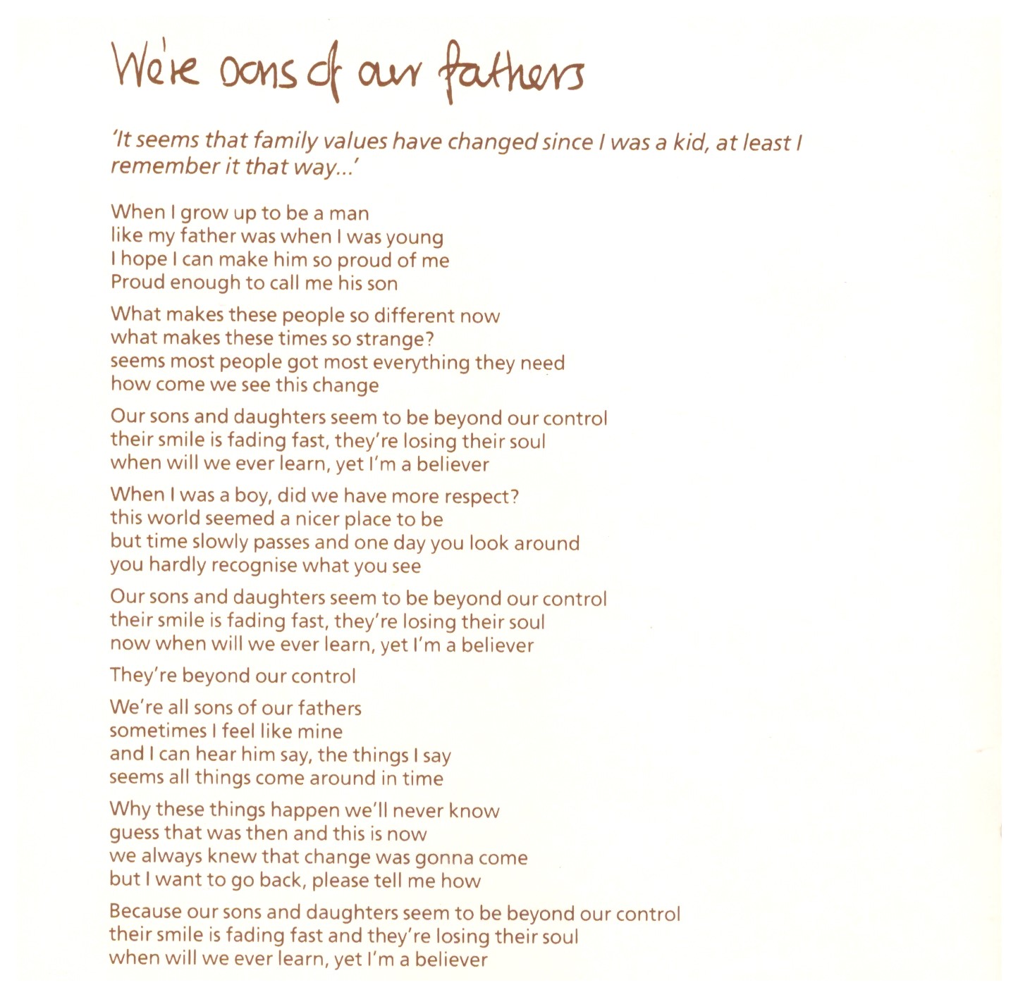 | 5 | We’re Sons Of Our Fathers | 6:24 | |