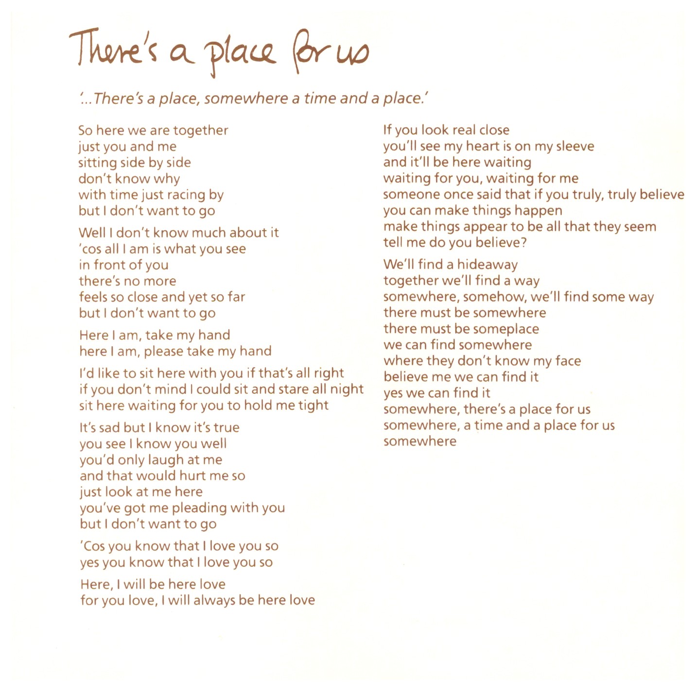 | 9 | There’s A Place For Us | 6:53 | |