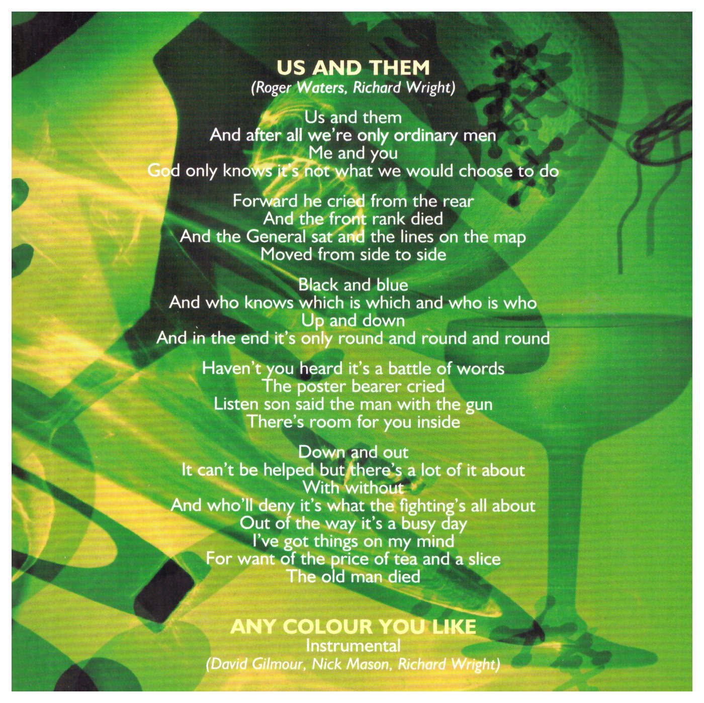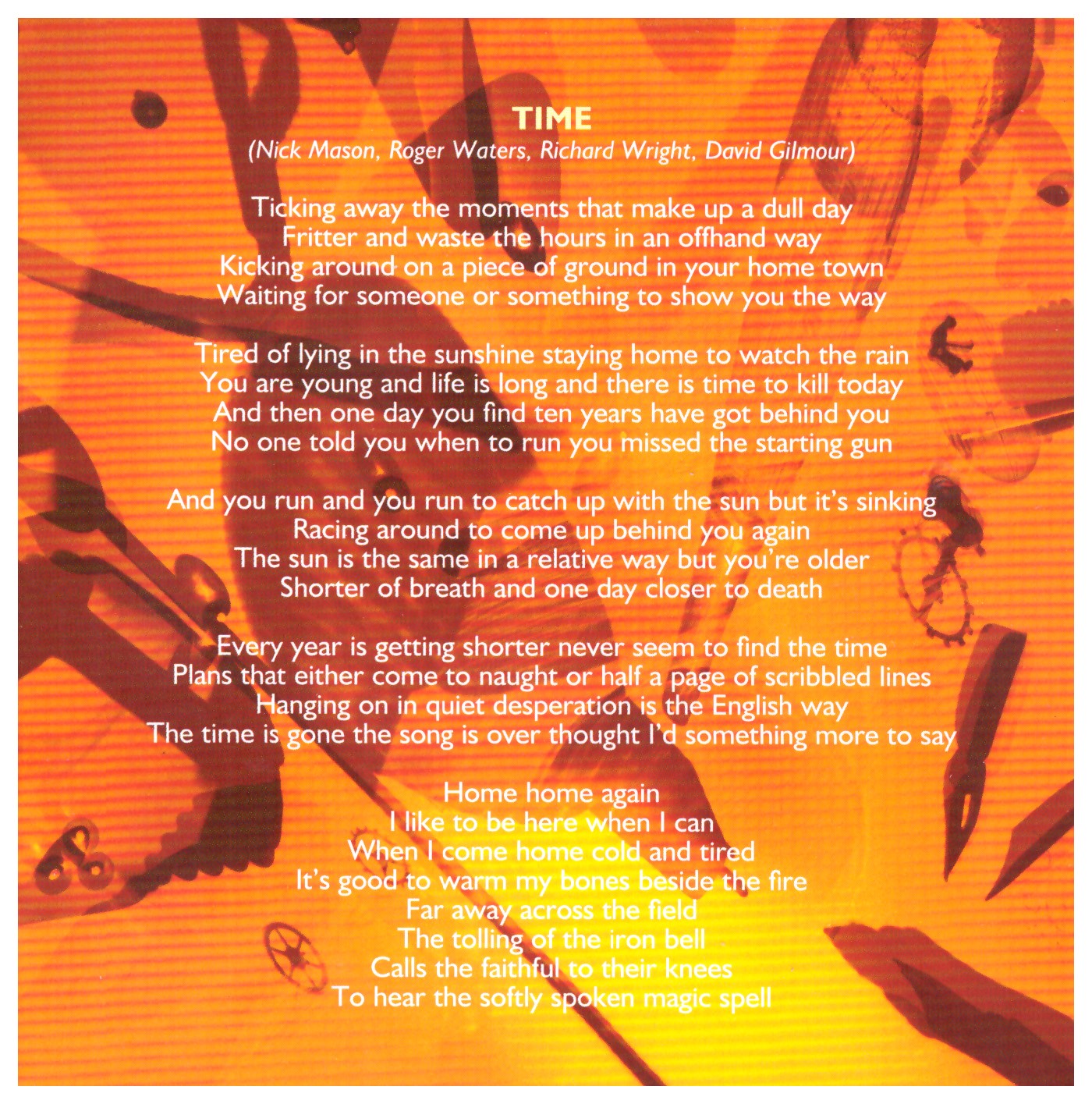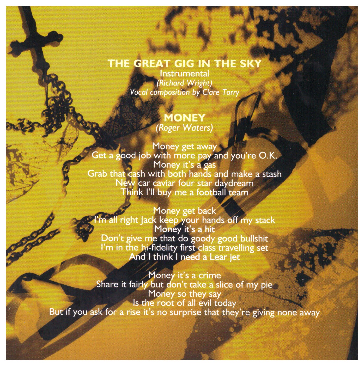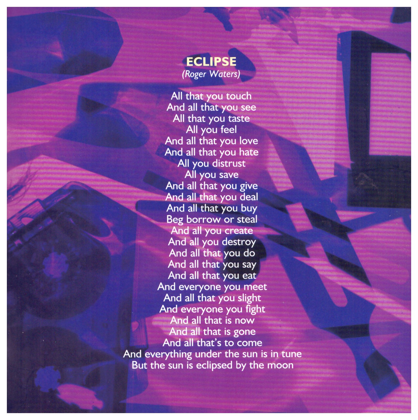 Pink Floyd – The Dark Side Of The Moon (1973 / 2011) EMI – 50999 028955 2 9 Trackliste 1 Speak To Me 1:07 2 Breathe (In The Air) 2:50 3 On The Run 3:45 4 Time 6:53 5 The Great Gig In The Sky 4:44 6 Money 6:23 7 Us And Them 7:49 8 Any Colour You Like 3:26 9 Brain Damage 3:47 10 Eclipse 2:13 Booklet