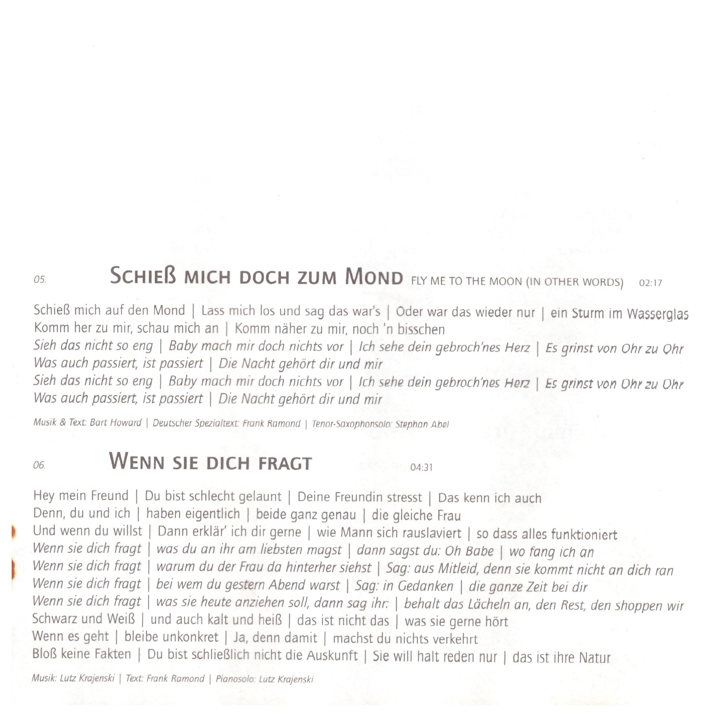 | 5 | Schieß Mich Doch Zum Mond (Fly Me To The Moon – In Other Words) | 2:17 | |
