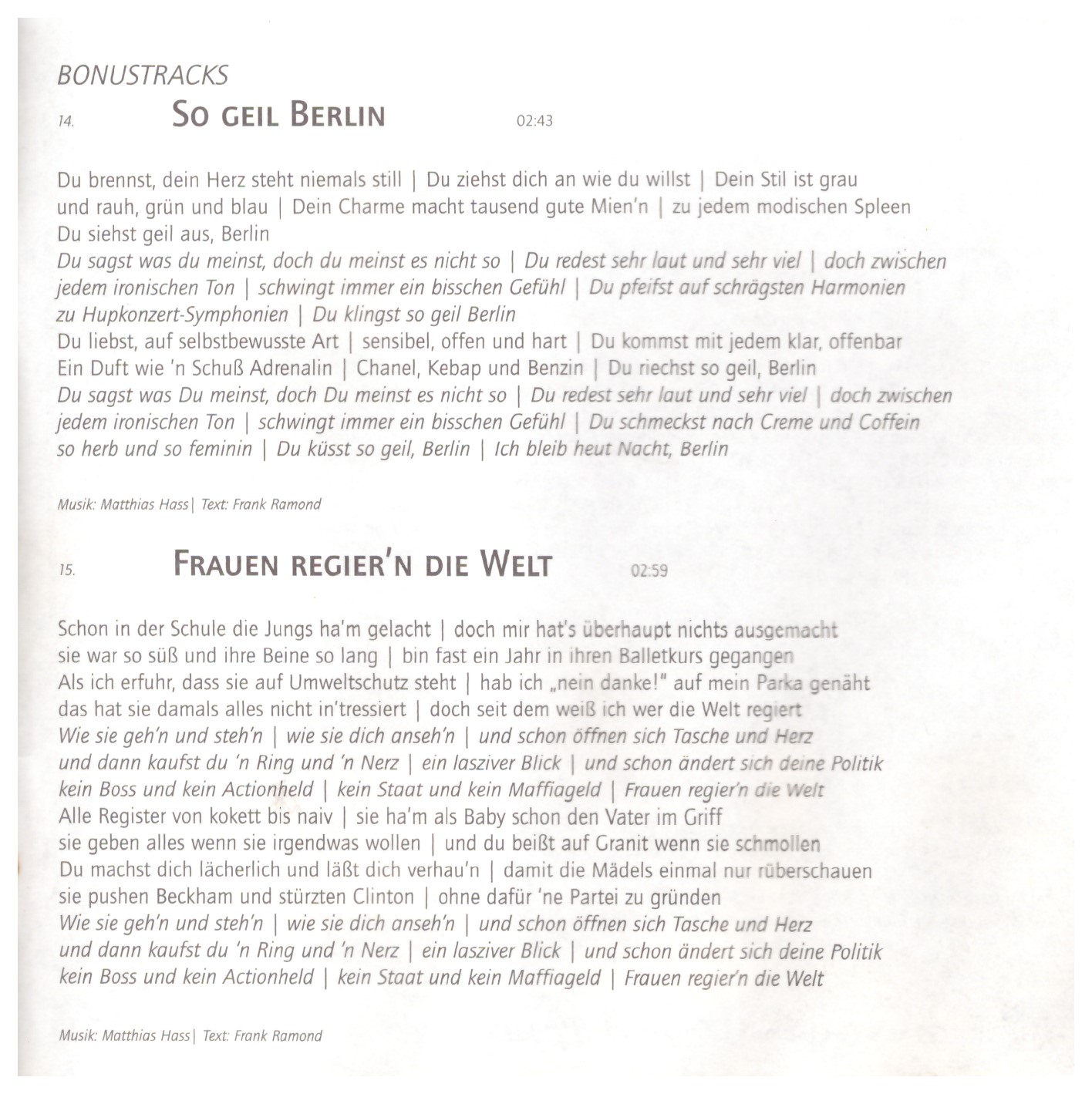 | 15 | Frauen Regier’n Die Welt | 2:59 |