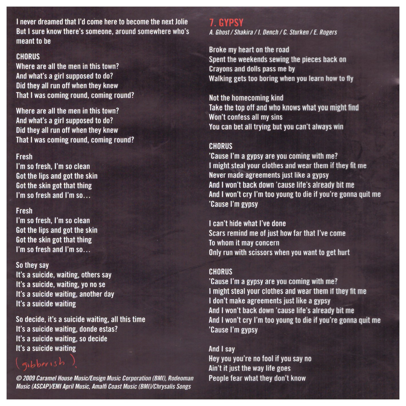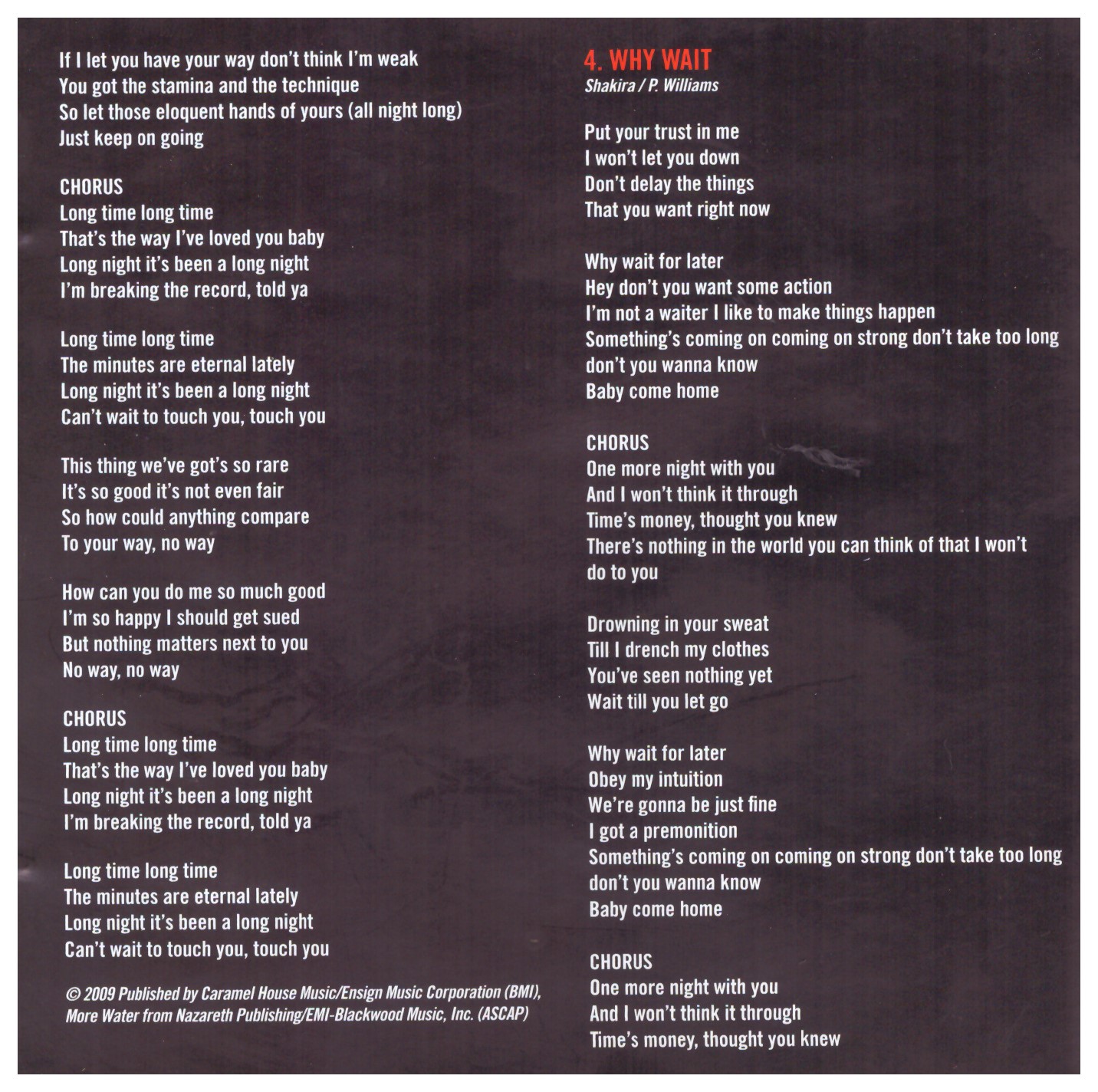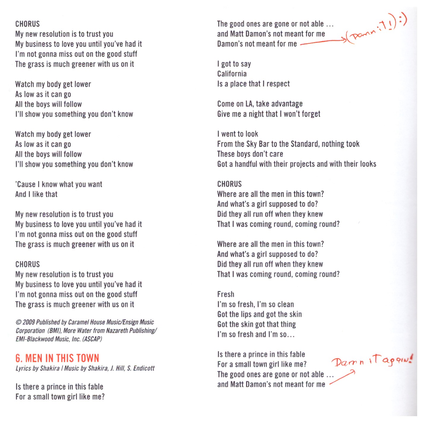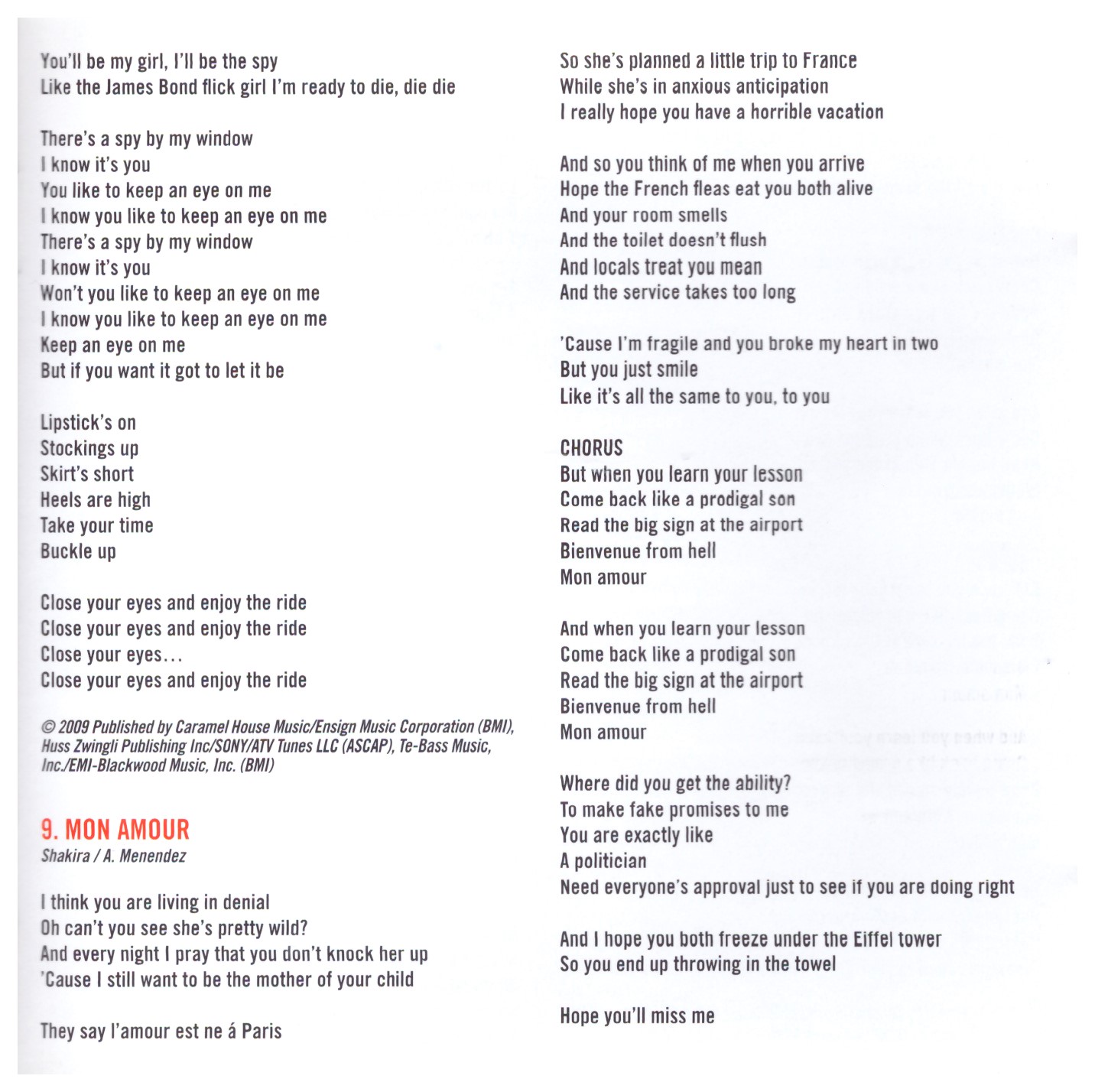 Shakira – She Wolf (2009) Epic – 88697595872 Trackliste 1 She Wolf 3:10 2 Did It Again 3:13 3 Long Time 2:56 4 Why Wait 3:43 5 Good Stuff 3:17 6 Men In This Town 3:35 7 Gypsy 3:18 8 Spy 3:27 9 Mon Amour 4:06 10 Lo Hecho Está Hecho 3:13 11 Años Luz 3:42 12 Loba 3:11 Booklet