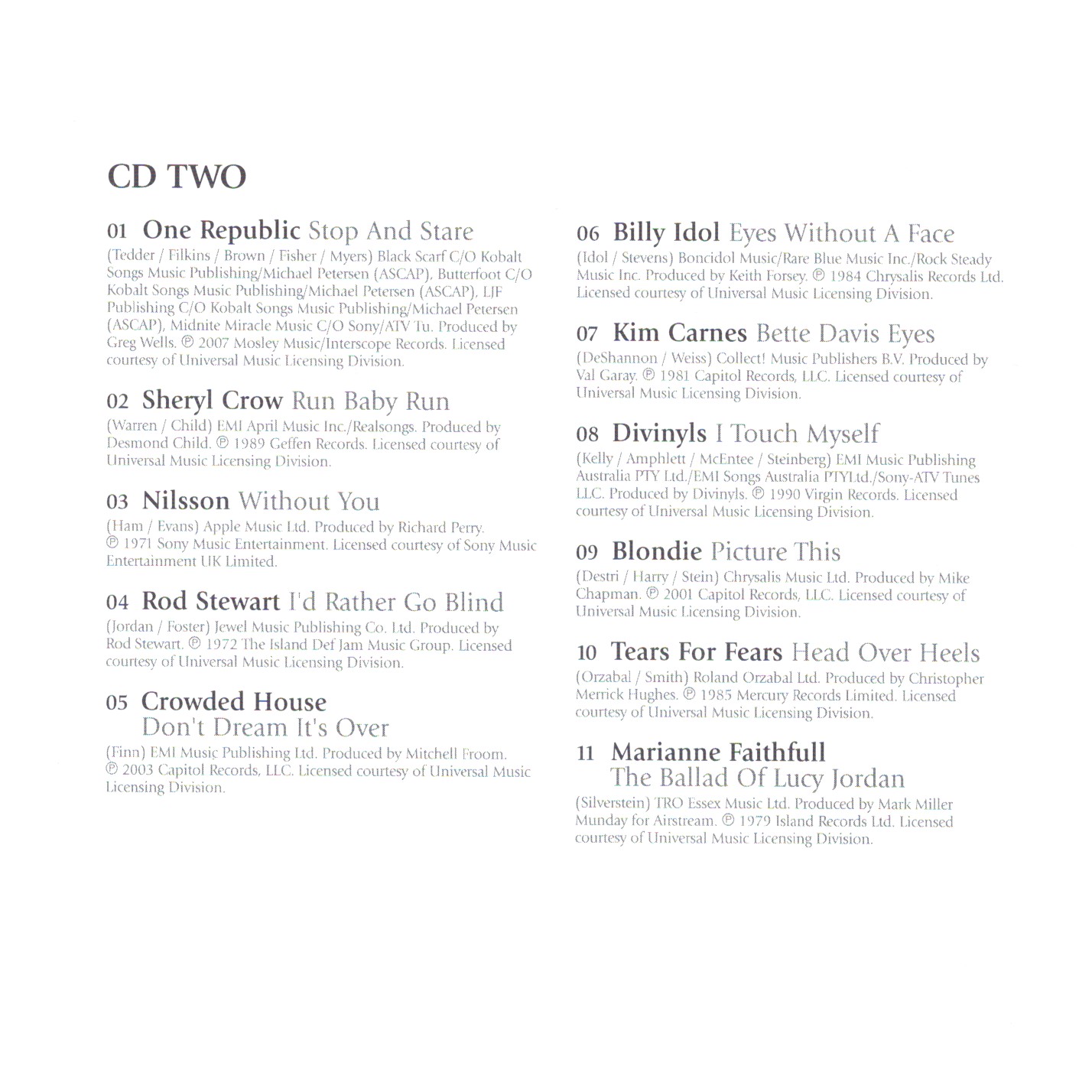 | 6 | Billy Idol | Eyes Without A Face | |