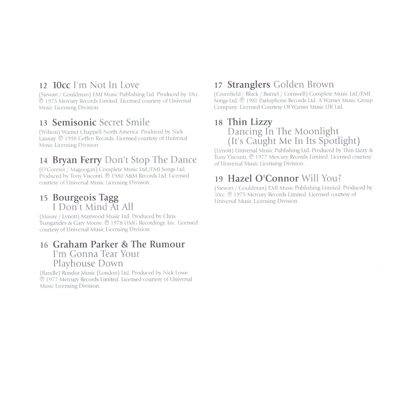 | 18 | Thin Lizzy | Dancing In The Moonlight (It’s Caught Me In Its Spotlight) | |