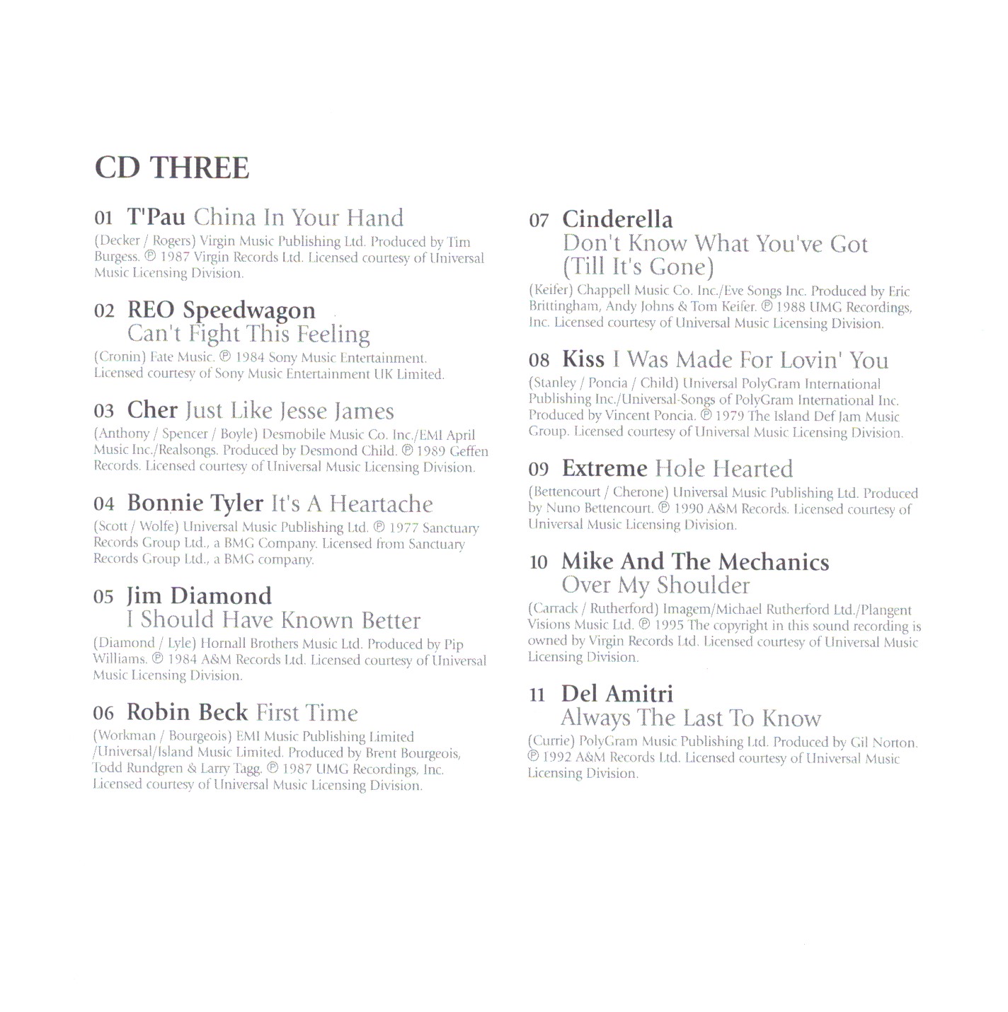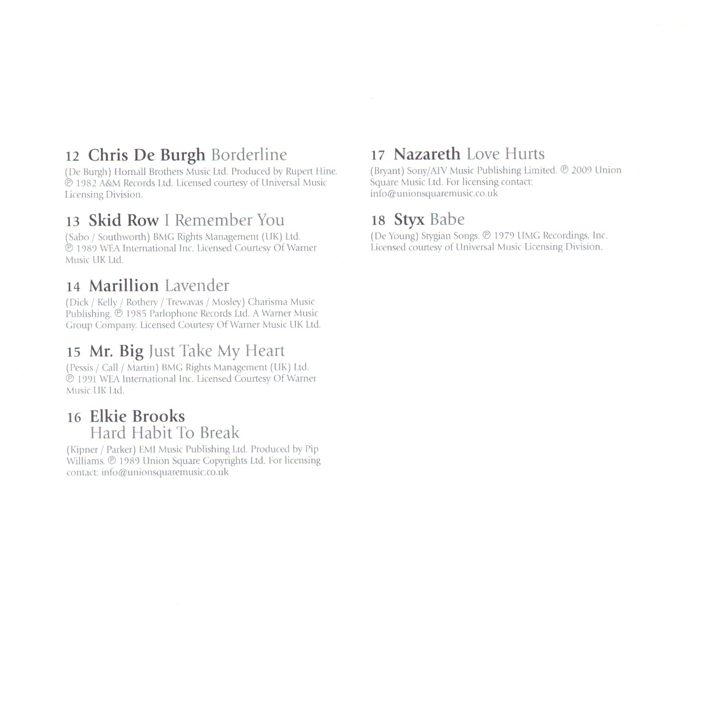 | 15 | Mr. Big | Just Take My Heart | |