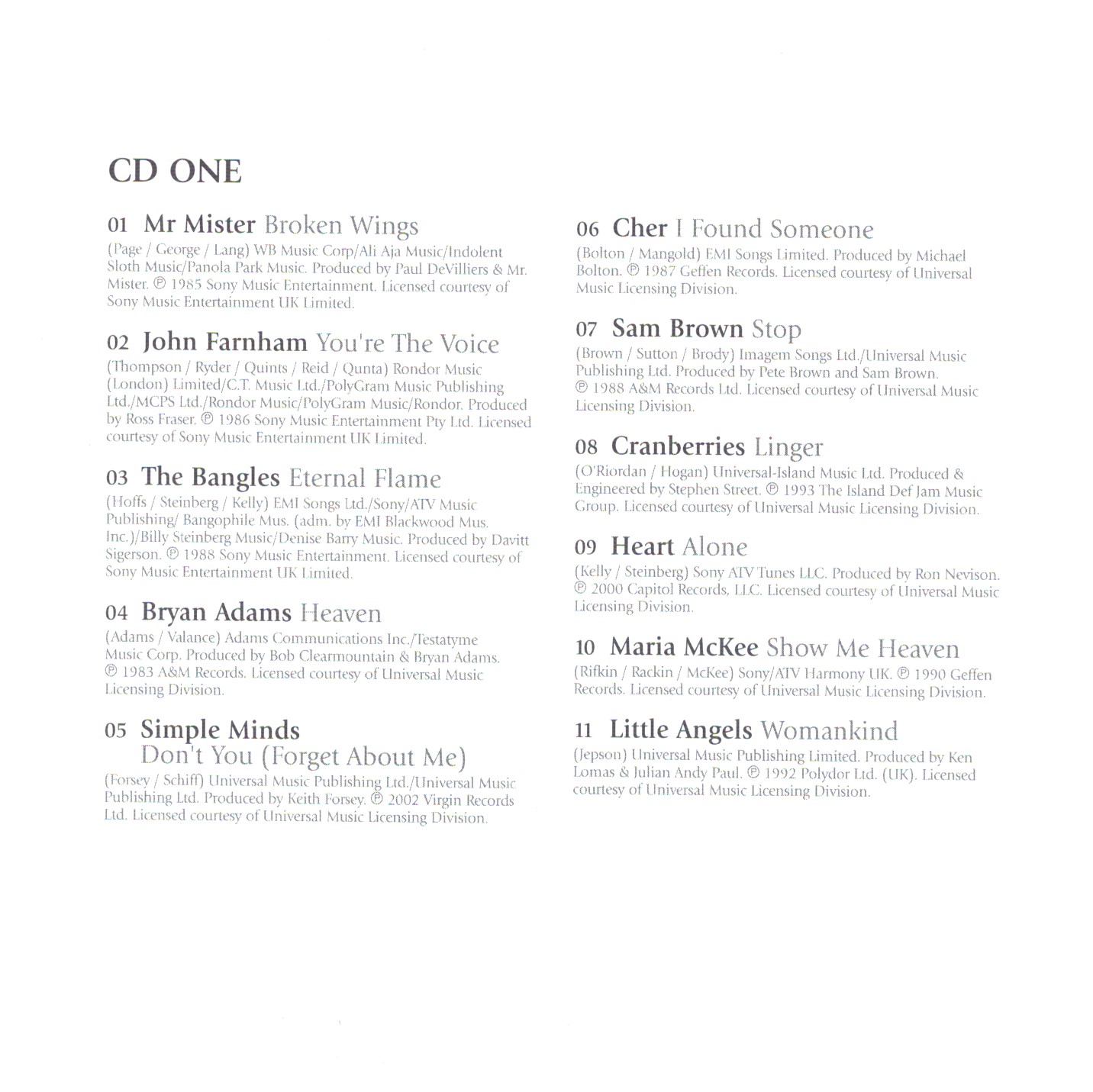 | 4 | Bryan Adams | Heaven | |