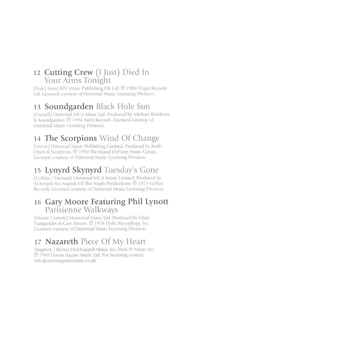 | 17 | Nazareth | Piece Of My Heart | |
