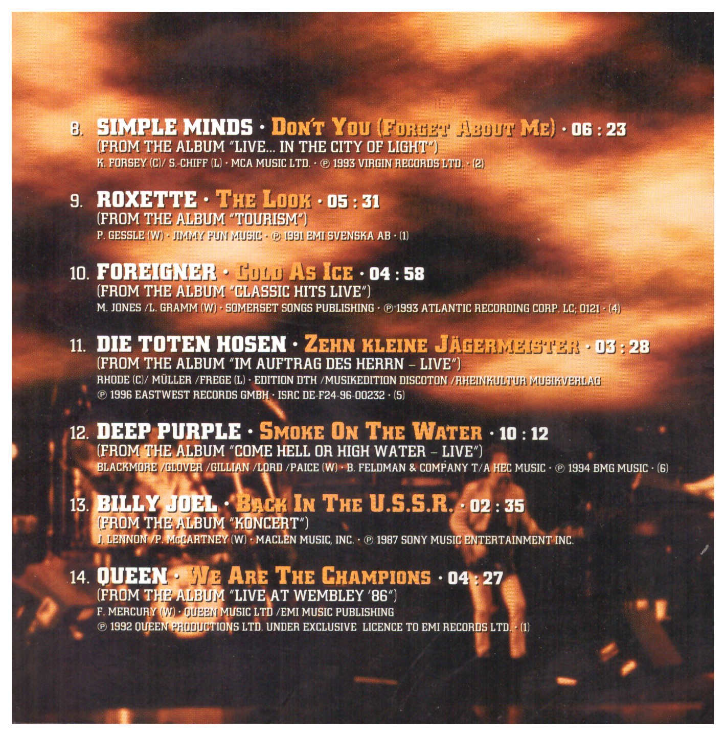 | 9 | Roxette | The Look | 5:32 |