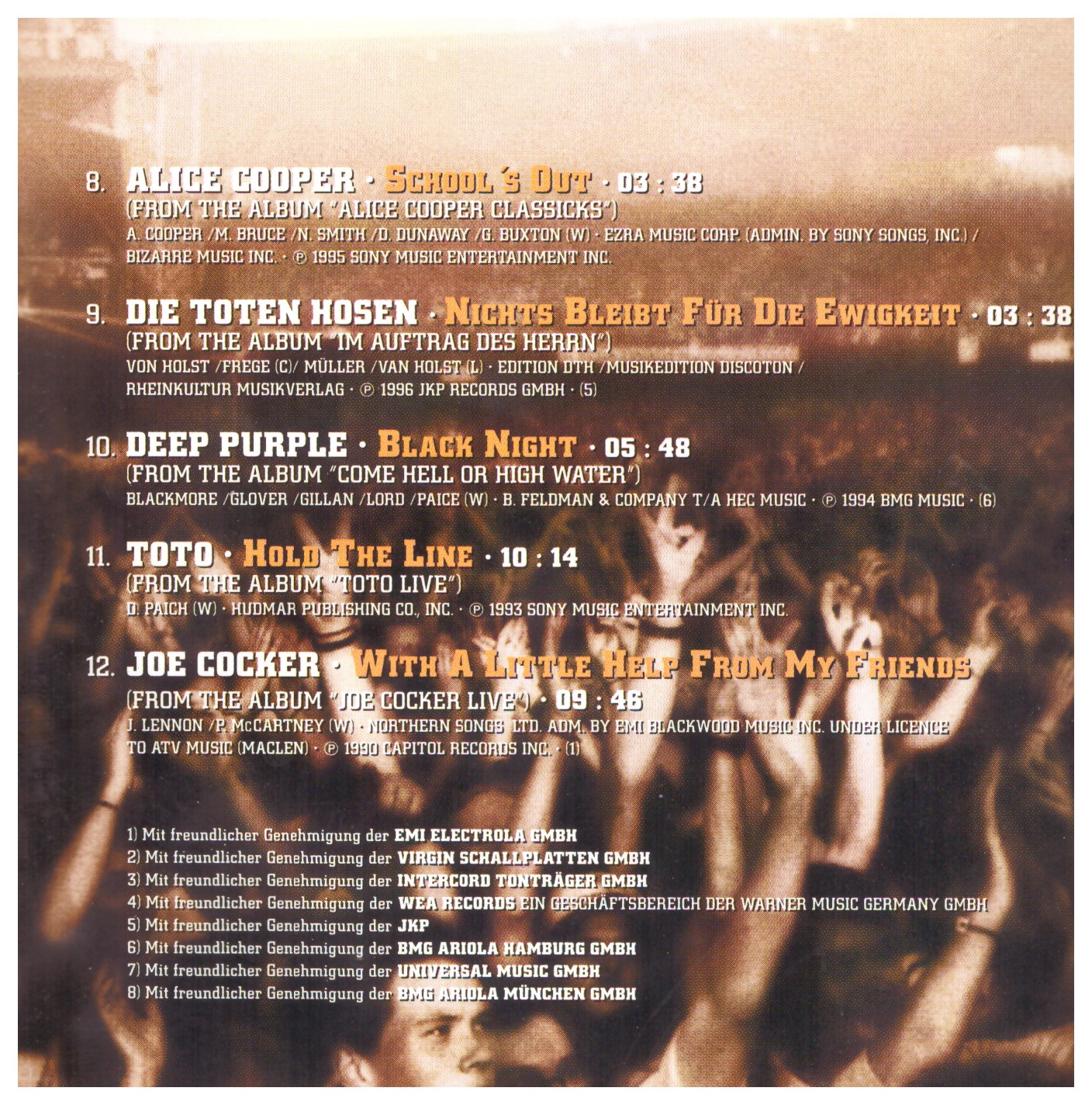 | 12 | Joe Cocker | With A Little Help From My Friends | 9:46 |