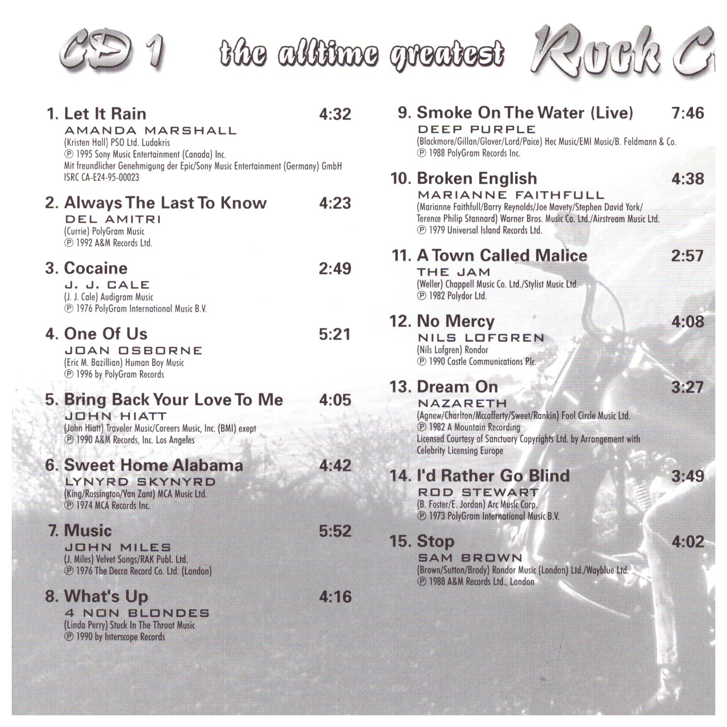 | 1 | Amanda Marshall | Let It Rain | 4:32 |