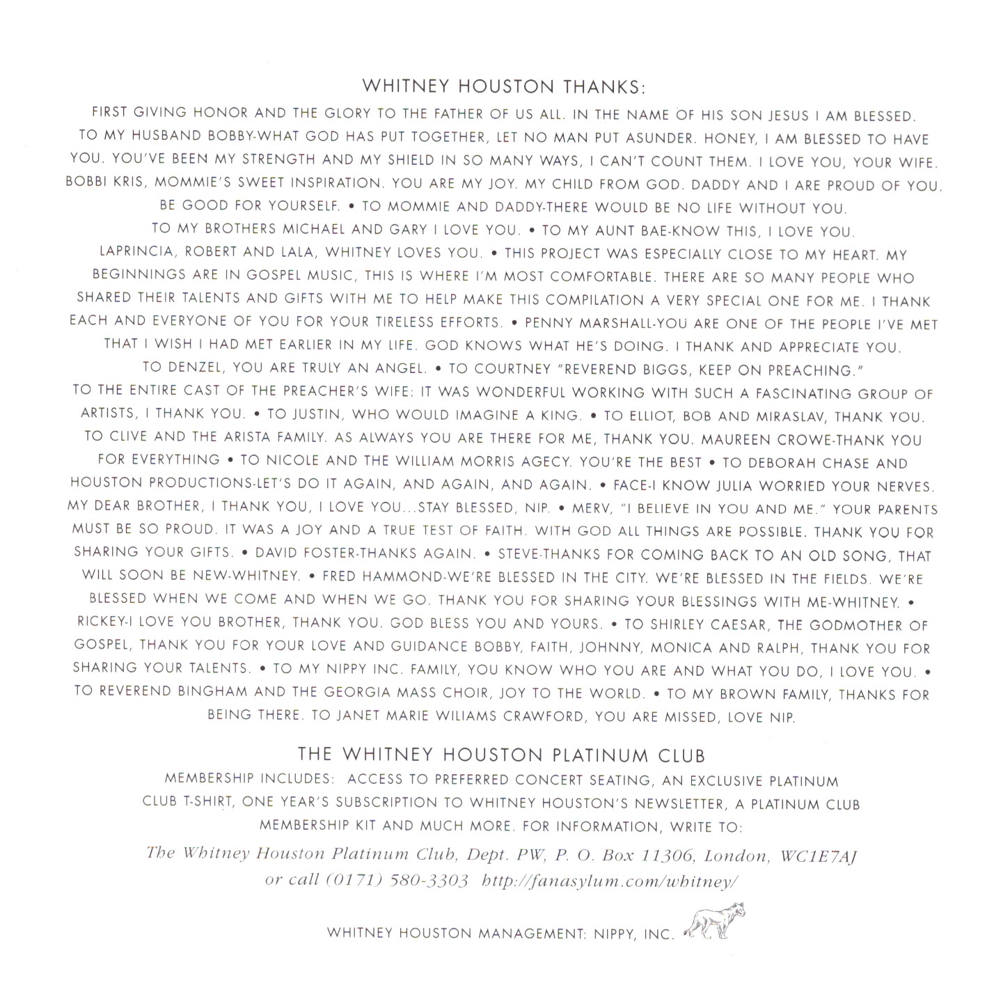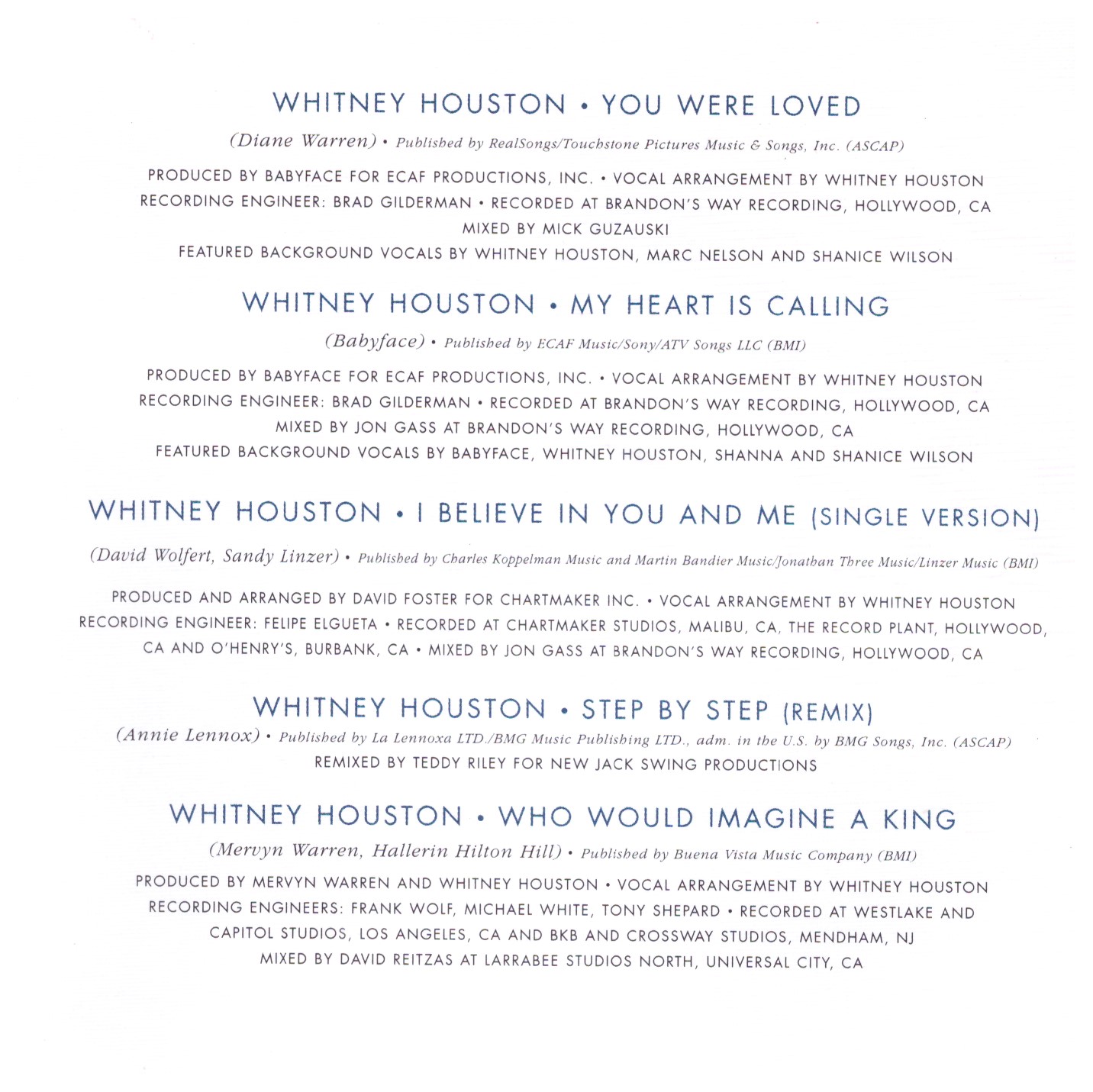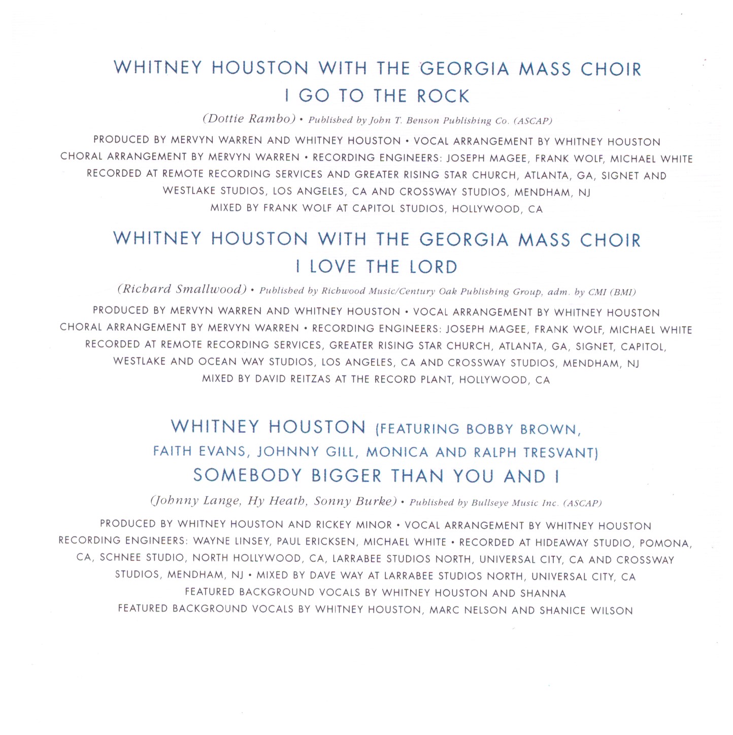 | 6 | Whitney Houston With The Georgia Mass Choir | I Love The Lord | 4:57 |