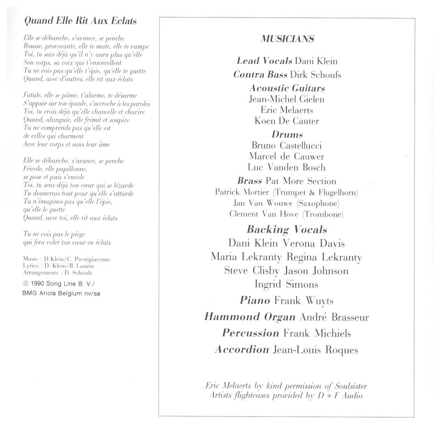 | 12 | Quand Elle Rit Aux Éclats | 3:46 |