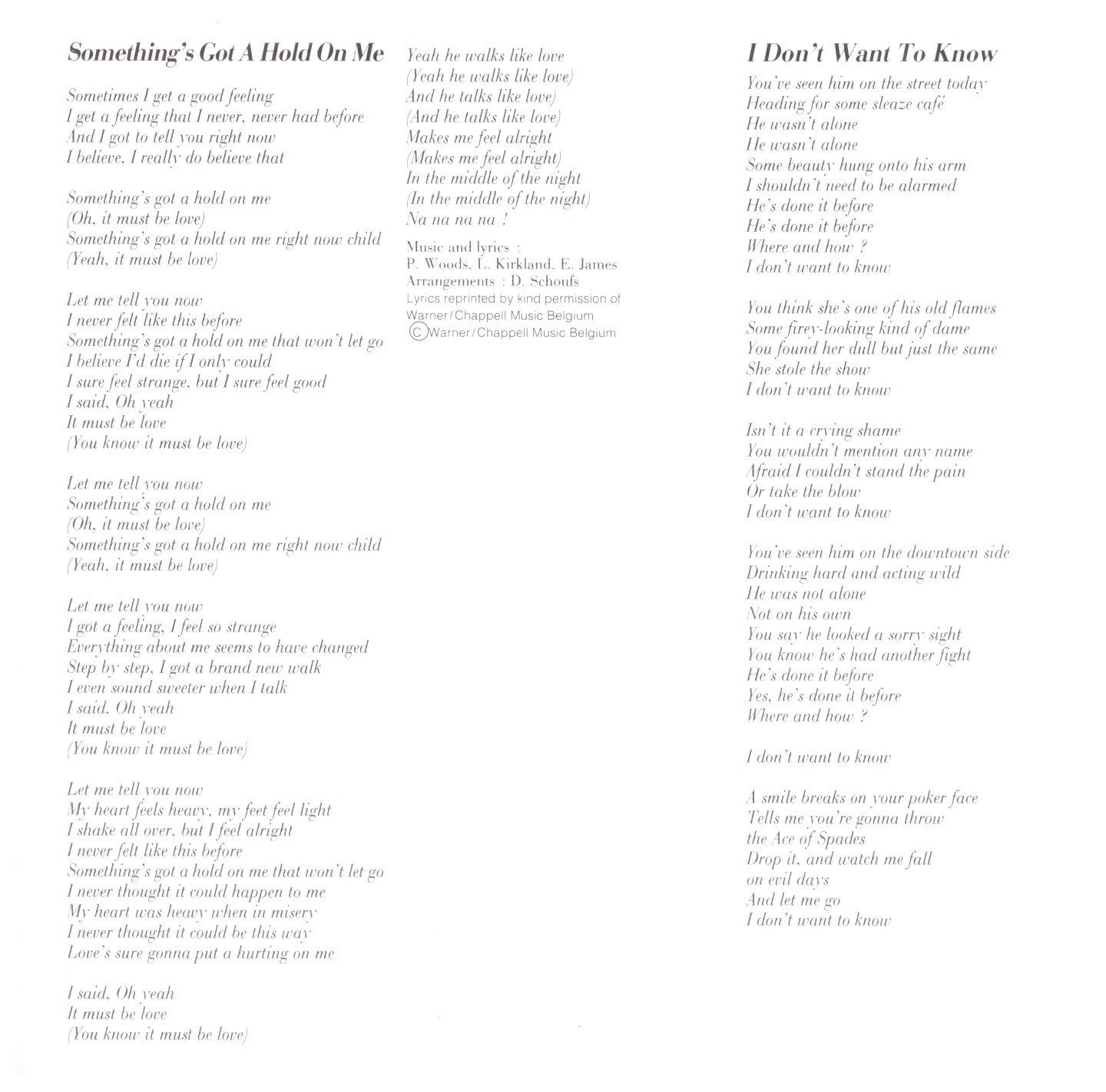 | 5 | Something’s Got A Hold On Me | 2:36 | |